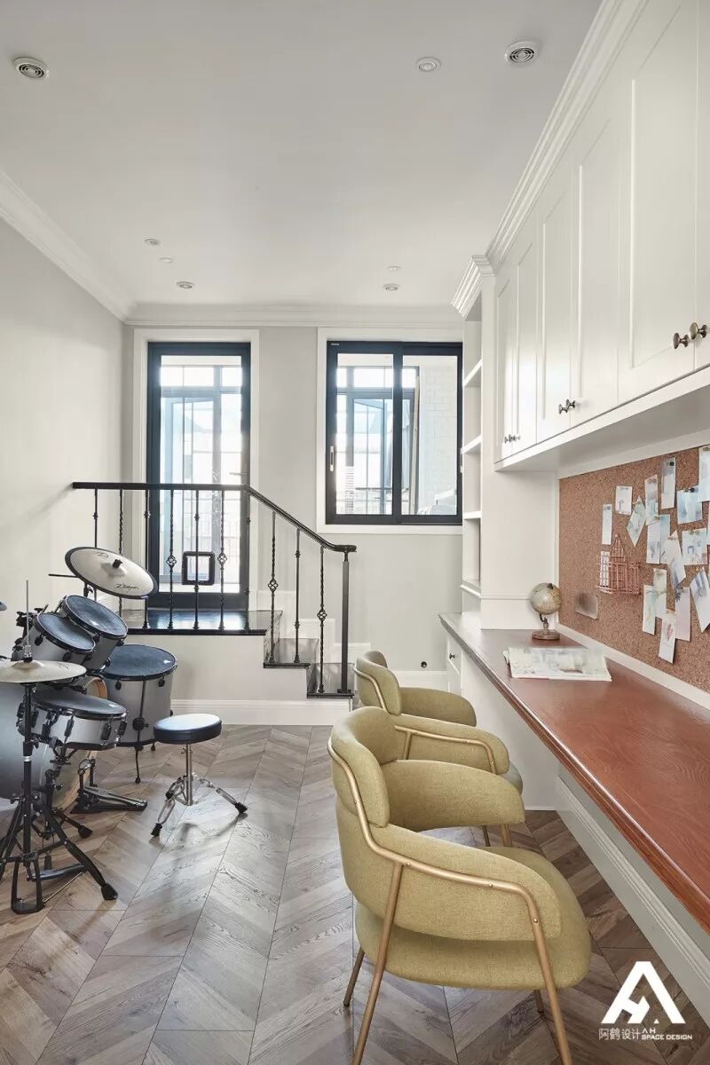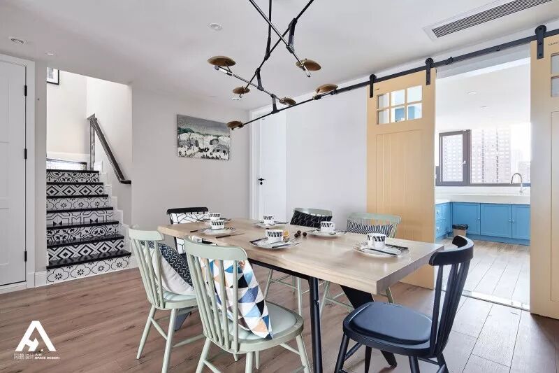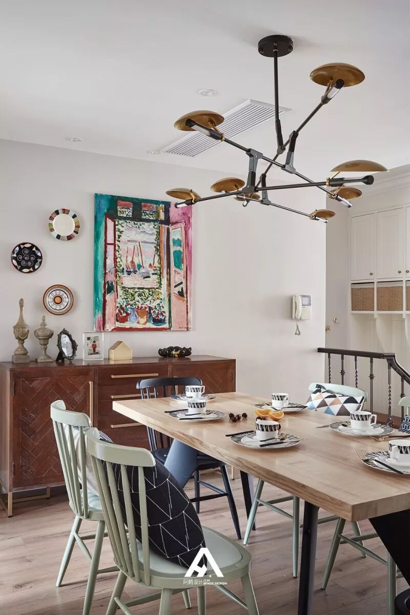 | AH DESIGN STUDIO 阿鹤 设计工作室 【工程地址】:南昌 【项目性质】:半包 【设计风格】:Eclectic 【设计单位】:阿鹤设计工作室 【摄 影】:林峰 【编 辑】:阿拉蕾 决定将这套房子装修时,就不想做一个随波逐流的人。 现代、美式、地中海、新中式、日式、北欧,这些框架我统统不要,把这些风格显而易见的特点都抛弃之后,哪些才可以装进我的房子里呢? 我想要一整面墙的黑色书柜装我那些无聊的闲书,我想有个大大的投影幕布看我喜欢的电影,我想有个色彩温馨的餐厅,我想有个颜色不一样的厨房, 我想给女儿一个毕生难忘的小树屋可以让她开心地爬进去玩耍,难过时可以躲在里面疗伤,我还想有个黑色金属框架的淋浴房,美丽的幻想总是需要有人去实现的。 我见过太多业主最后装完之后的家与效果图完全是两套房的情况,直到在朋友那儿见到阿鹤为她打造的家,我就知道这是我要找的人。 还好在这座城中遇见了阿鹤,在寻找设计师时,遇见大牌,遇见手握几百张效果图的推销,都不稀罕,难得的是遇见了解。 他用精湛的图纸和超强的执行力满足了我对一所房子的所有幻想。 如你们所见,这是一套色彩鲜艳,充满活力,有趣的房子,为了让一切都达到设计要求,我们花了许多时间在本地和全网搜索材料, 主卫的黑色金属框架淋浴房是我的最爱,它来自上海一家专做民国老式窗户的厂子; 全屋柜子的油漆我们请了城中做漆最棒的店家现场制作,只为站在柜前可以亲眼看见和触摸那细腻的质感; 所有柜门的款式,在查阅了很多国外资料后,选定了Shaker风格,这是在美国已经流行了60年以上的经典柜门款式,其实在欧洲历史更悠久, 唐顿庄园和了不起的麦瑟尔夫人里都有同款,柜门拉手是阿鹤从网上搜来的; 所有的家具和软装,都由阿鹤亲自挑选搭配,搬进家中摆设好之后,整个家就亮了。 谢谢阿鹤和他的那群可爱的年轻人们对我们家的付出和帮助,谢谢你们。 业主感言. 一楼方案 二楼方案 玄关 入户玄关,考虑的是功能至上,穿衣镜,换鞋凳,挂衣架,置物篓一样都不可少,地面的小砖拼花与客厅地板高差设计是为了更好的把鞋子所带的泥沙与客厅完全隔开。 客厅 走进这个家,首先被吸引的是一个环抱式的客厅,一边围壁炉,一边可眺望远方,耳边传来的便是家人阵阵幸福的嬉笑声~ “家是要满足人真实生活需要的地方,而居住更不是硬装拗造型。”这个位于南昌市老城区的跃层公寓有着巴黎艺术气息,又有着法式精致细节,风格杂糅却能和谐共存,Eclectic风格的包罗万象、兼收并蓄由此可见一斑。 设计师为居住成员休闲、交谈、娱乐而打造的家庭厅,成为了家庭成员情感互动的场所,让生活重回本来的意义。 餐厅 厨房 女儿房 作为有宝贝的家庭,父母总是忍不住会把家里最好的区域留给孩子,譬如最方便的一楼和光线最美的位置就成了孩子的起居室。设计师因考虑到孩子的成长需要,还设计了一些弹性空间,特意将衣柜打造成半开放式的“树屋”,让她开心地爬进去玩耍,难过时可以躲在里面疗伤,让最爱的猫咪也充盈在她纯真的梦乡中。 一楼卫生间 主卧室 相比于美剧中不苟言笑的中年夫妇之家,设计师用莫兰迪蓝色跳出整个画面,更适合业主随性追求自由的心。 二楼卫生间 当卫生间不再只是卫生间,而是一道靓丽的风景,生活轨道也在不知觉中悄悄改变着。 二楼楼梯间 书房 洗衣房 露台 一杯茶,一本书,一片阳光,一个下午,伴随着时光流逝的不是无聊和寂寞,而是一种充实的温暖和放松、舒适的生活格调。