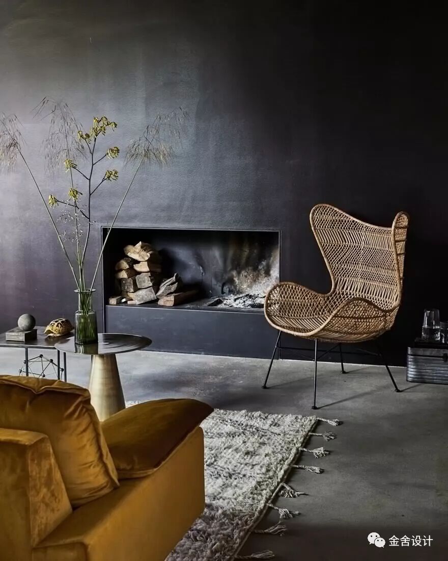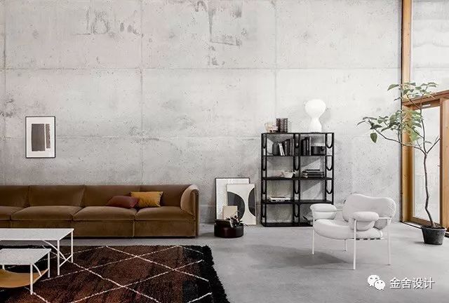 在墙面直接使用混凝土,有助于将沧桑感和 Wabi Sabi 的触感带入室内。不同于典型工业风,要创造一种冷峻的感觉,混凝土实际上可以带来一种温暖的触感。特别是如果混凝土墙与有柔软触感的纹理和陈设相配,效果更好。想象一下,混凝土墙搭配皮革或木头。