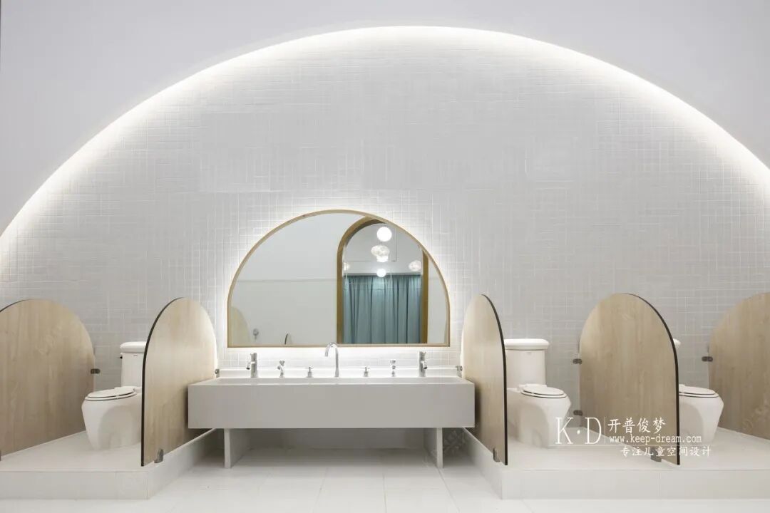 ▲卫生间男女分厕形式,保护孩子们隐私。盥洗区和厕所区分区设置,有序工作程序,培养幼儿们良好的生活习惯。