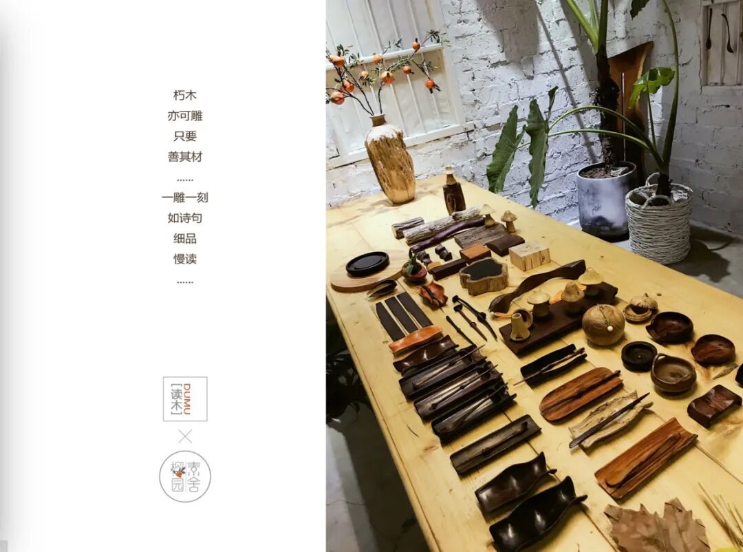 跨界合作 设计的过程中,设计团队探讨对于“石榴木材“的开发利用。石榴树生长慢,枝干各异无法成为板材、块料。石榴木材于当地农户大多作为柴火,或者当作垃圾焚烧,一者耗费人力,二者污染环境。如何变废为宝?设计团队通过跨界合作,请来木作匠人以小物件如茶器、餐具入手,开发了多种产品。