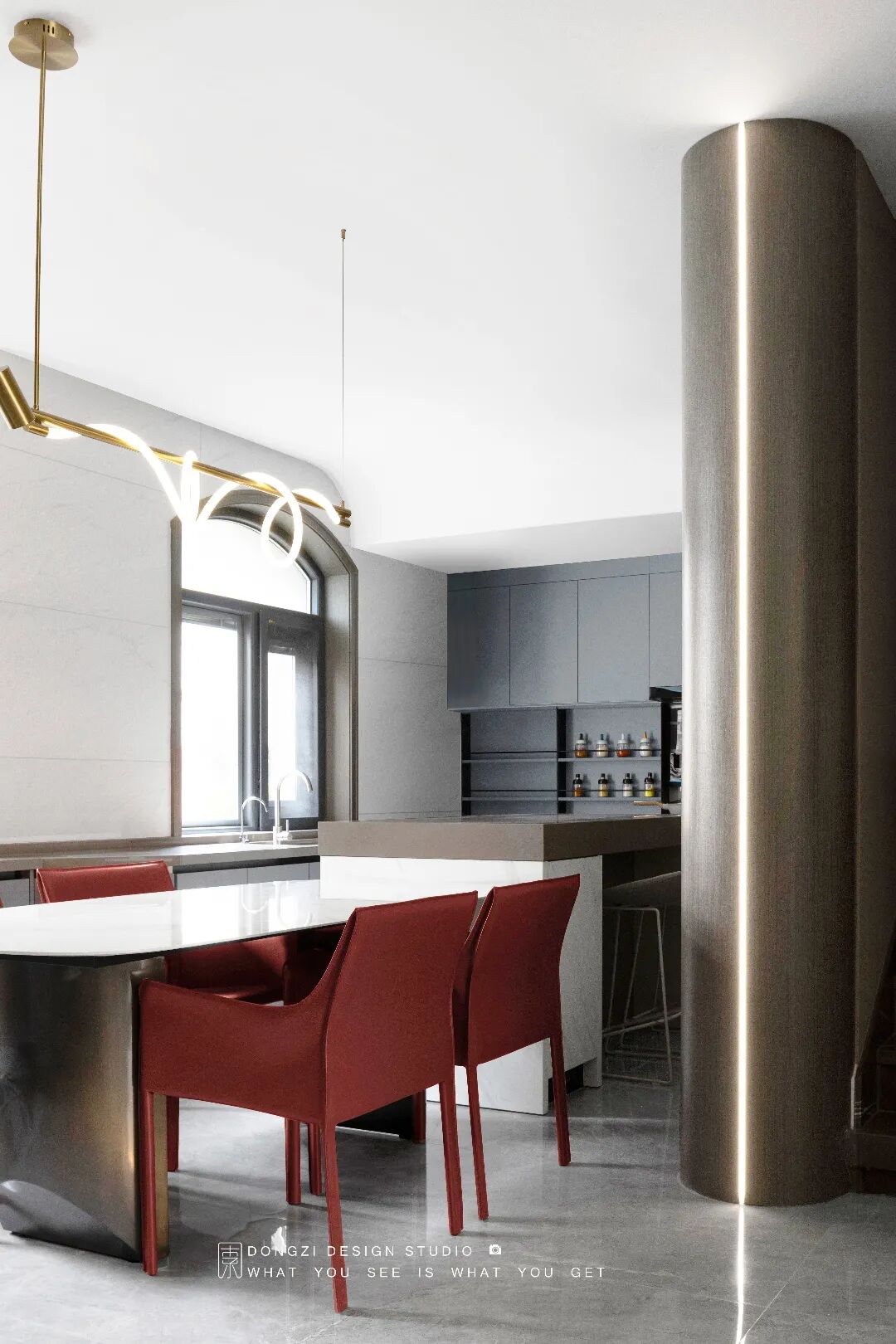 我们总说建筑就像一本打开的书,你能看到一座城市的抱负,就空间而言,它更像一首娓娓道来的散文诗,你看到是一个家对于生活状态的极致追求。 生活的仪式感,是将每一件普通的小事演绎的熠熠生辉。摒弃传统的玄关,使开敞的空间形成吧台的格局,是设计师的巧思所在,创造一种归家的仪式感,告诉你:生活在这里。