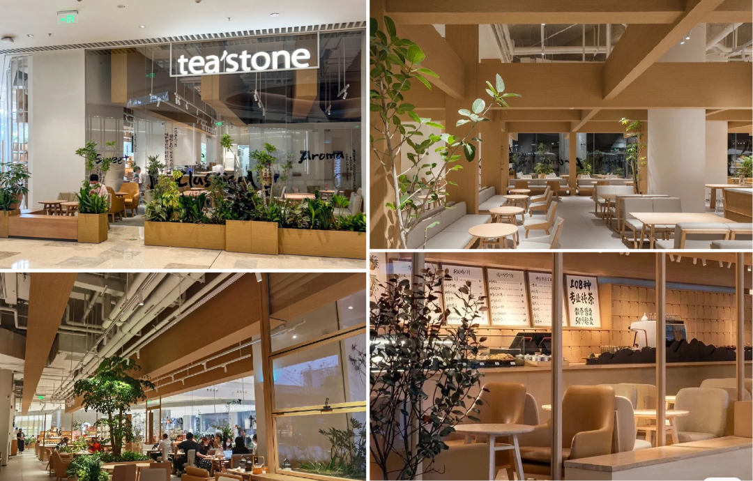 The area where the project is located is the Yuzhuwan Headquarters Cluster of the Second CBD planned in Guangzhou - International Financial City - Huangpu Lingang Economic Zone. At the beginning of 2020, the Guangzhou Artificial Intelligence and Digital Economy Pilot Zone was introduced, focusing on the construction of three major areas (about 81 square kilometers) on both sides of the Pearl River, Pazhou Area (including the University Town Area), the International Financial City, and the Yuzhu Area, to build a new golden triangle in Guangzhou. 03 设计理念 DESIGN SKETCH“在与客户的沟通过程中,客户明确表示了不希望打造一个传统意义上的员工餐厅,他们期望营造一种更加轻松愉悦的氛围。为此,我们深入调研了具有此类设计理念的场所,如深圳的‘山池’咖啡厅以及‘teastone'原创茶饮店,以捕捉符合客户需求的设计元素。”“In the course of communication with the customer, the customer made it clear that they did not want to create a staff restaurant in the traditional sense, they wanted to create a more relaxed and pleasant atmosphere. To do this, we conducted in-depth research on venues with such design concepts, such as the 'Shanchi' café in Shenzhen and the 'teastone' tea shop that is currently popular in Wuhan, to capture the design elements that meet the client's needs. ” ▲图片来源于网络 “我们注意到,虽然这些地方营造了客户所追求的轻松氛围,但也存在一些问题,例如绿植过多,可能导致后期维护困难与成本上升。因此,我们在设计方案中适度减少绿植使用。”"We noticed that while these places created the relaxed atmosphere that our customers were looking for, there were also some problems, such as too much greenery, which could lead to difficult maintenance and higher costs. Therefore, we have moderately reduced the use of greenery in our design schemes. ”