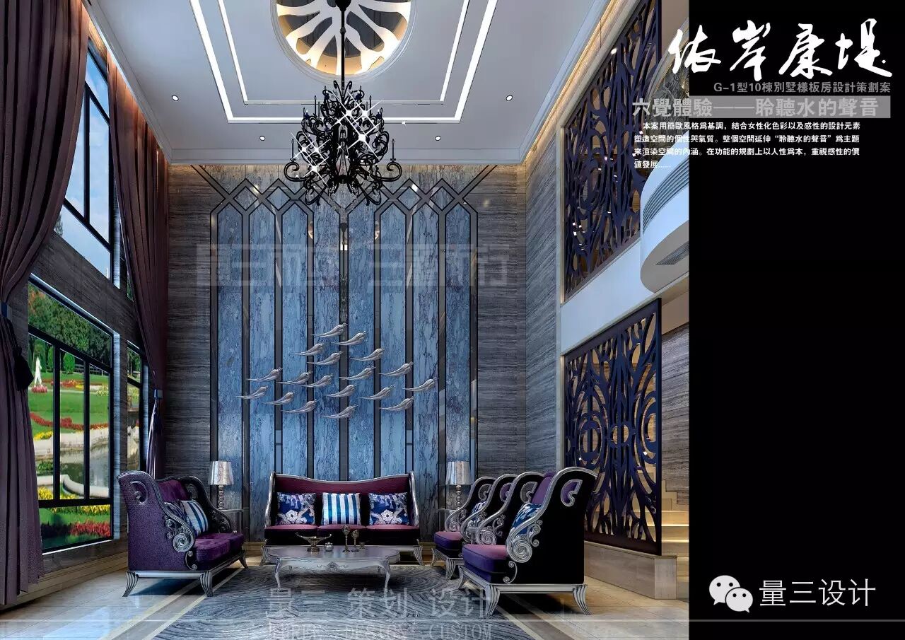 六觉体验--聆听水的声音 本案用简欧风格为基调,结合女性化色彩以及感性的设计元素塑造空间的个性兴气质。整个空间延伸"聆听水的声音”为主题来渲染空间的内涵。在功能的规划上以人性为本,重视感性的价值发展。。。。。。