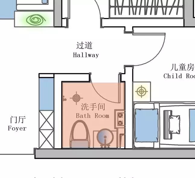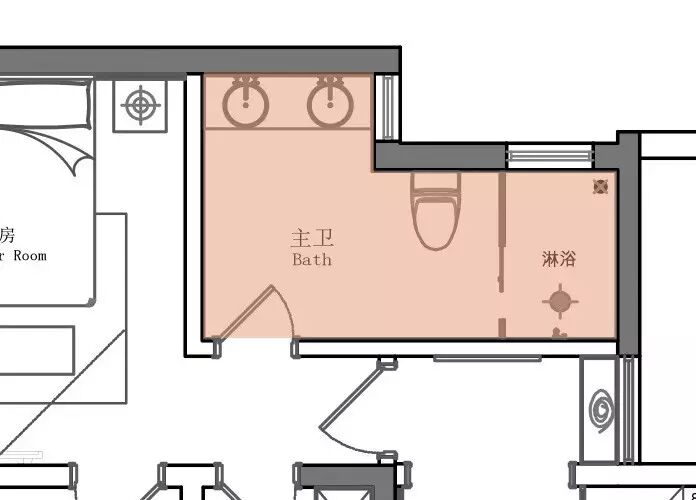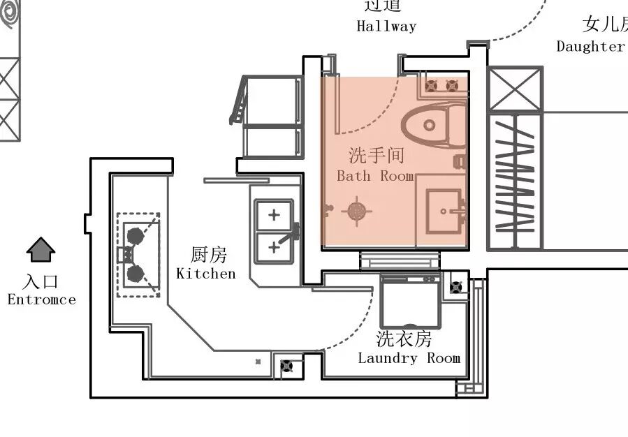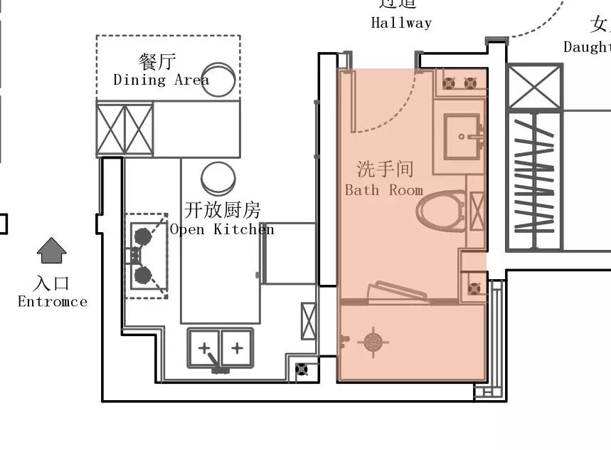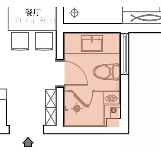 改造前▼ 原马桶位置极不合理,不能设计独立淋浴房。 改造后▼