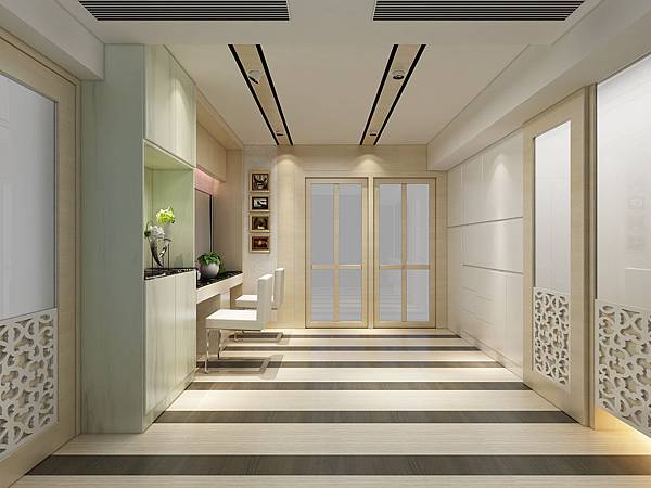 SPA 会馆,讲究提供极致的放松服务,替顾客带来身心的和谐,其室内空间规划上,亦同步挹注五感放松体验,在现代风的轻简概念中,营造静逸沉淀的使用体验