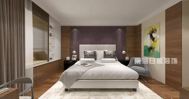 主卧用紫+灰的色彩搭配,营造了优雅浪漫的感觉。在高级灰的基础上,一抹梦幻与柔美并驾齐驱的紫色,让卧室仿佛一位纤柔感性的温婉女士,优雅端庄、带着点梦幻和浪漫。