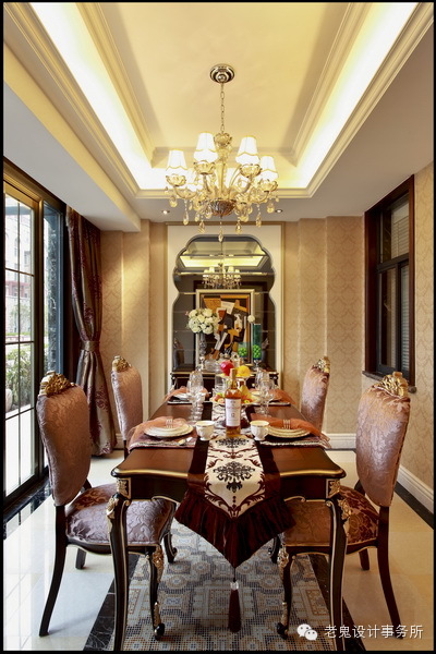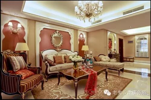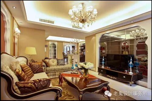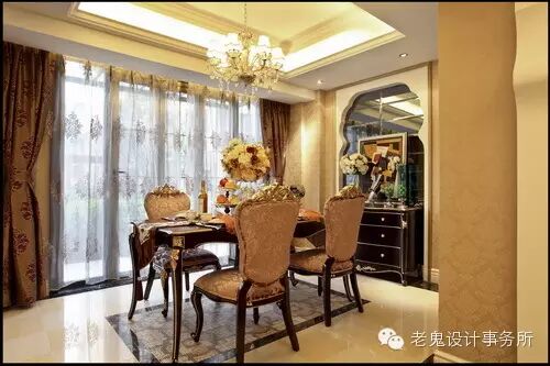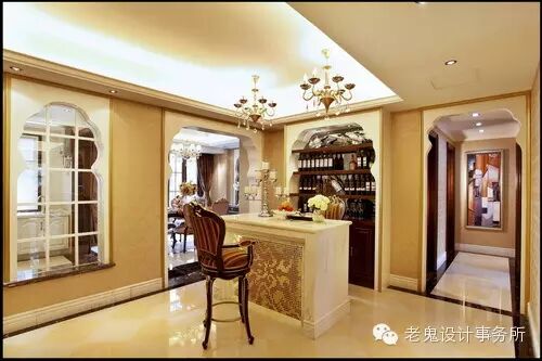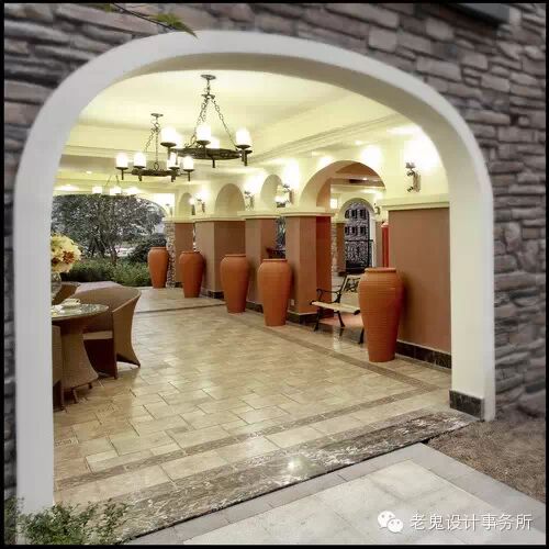 在这个喧嚣、物欲横流的社会,人们在生活中不断的追求典雅、尊贵的生活品质,在空间营造上更加注重人与人之间情感的细腻体验。本案设计作品,采用西班牙式的温情摇滚乐的设计手法,对西班牙的地域文化、建筑元素等进行了提炼并运用。将西班牙的特色文化马蹄门元素引入这个室内空间,体现了现代温情的生活气息;地面的拼花采用了斗牛士的精神色彩,用菱角分明的铺法,室内摇滚乐的气氛表现得淋漓尽致。