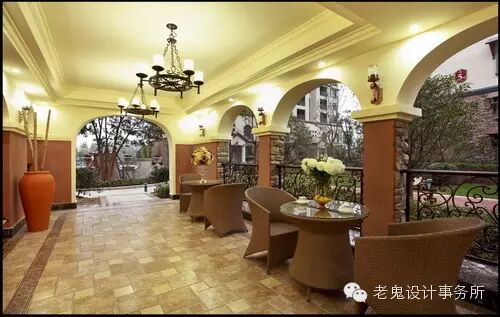 在美妙的西班牙式温情摇滚乐中,人们可以感受到阳光、沙滩的西班牙式浪漫生活,为了体现这段浪漫的过程,在户外花园设计上,采用了赤陶、粗糙的毛石、黑色的铁艺雕花等元素,充分体现了地中海的阳光海岸情调,让这个豪宅设计作品中更加摇滚、更加温情。