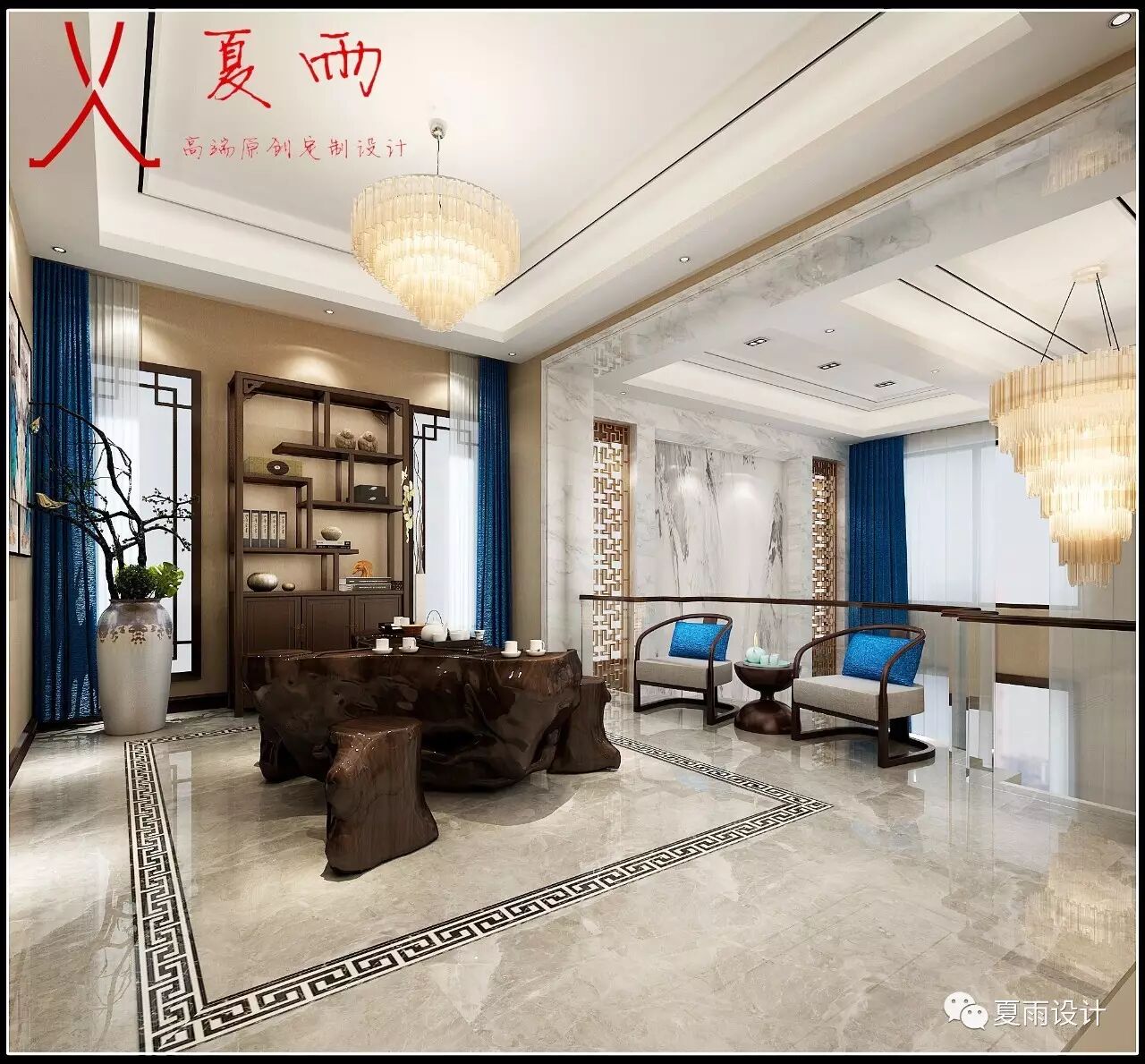 设计师:丹阳九艺设计总监 --- 夏雨 面积 :350平方 装修风格:新中式 主要材料:大理石 全抛釉 护墙板 墙布 PU线条 实木地板