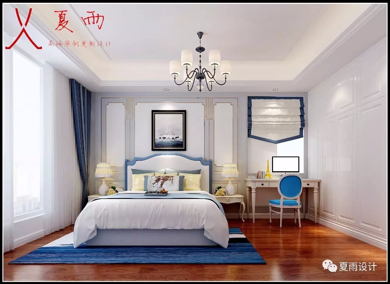 主卧室效果图:主卧室作为家里最大的房间,从色彩上就设计的比较沉稳的色彩,然后打上一点点缀的色彩,是整个空间既有沉稳大气,又不会感觉到沉闷