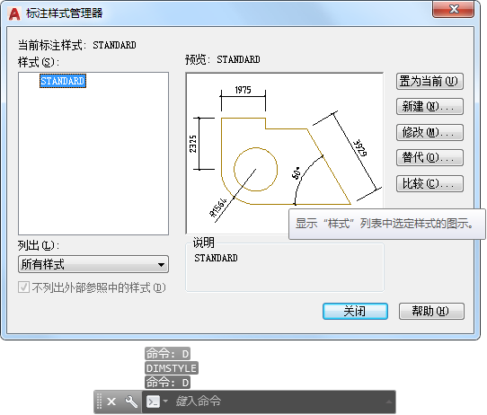 文字样式的设置,参照上一节课的内容,我们可以看到图中有很多的文字样式,没关系,选择我们想要的文字样式即可。 Setup 7,标注样式【调整】