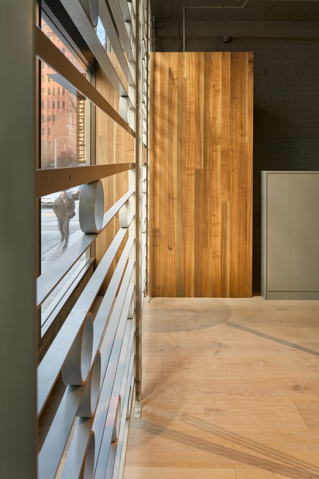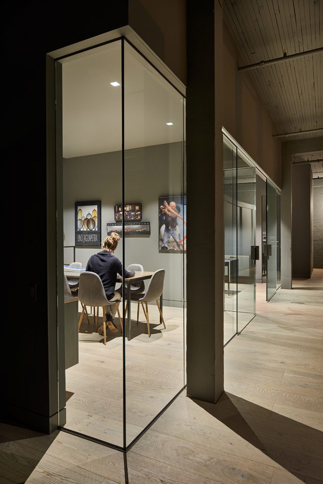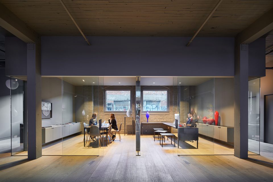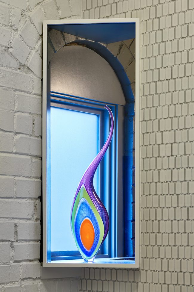 这间工作室位于西雅图市中心的Belltown,是为展示Lino Tagliapietra的玻璃艺术而设计。Tagliapietra的作品探索了玻璃的极限,包括其形式、质地和色彩。室内空间呈现出平静且克制的基调,与富有戏剧感的作品形成呼应,同时使艺术品本身成为环境中的焦点。