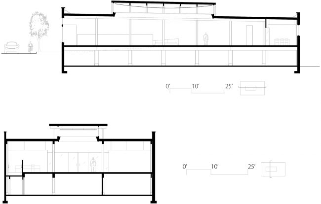 工作室所在的建筑建于1917年,是一个基于木制框架的单层砌砖结构,在城市环境中构成一个安静的角落。以钢材和木材打造的大门定义出入口空间,微微反光的钢板标示出场地的用途。在室内,入口通向一条倾斜的坡道,该坡道与工作室的空间保持了平行。主体空间是一个面积为6100平方英尺的开阔区域。