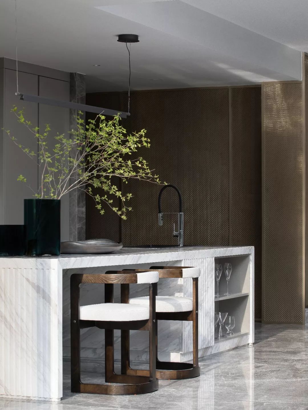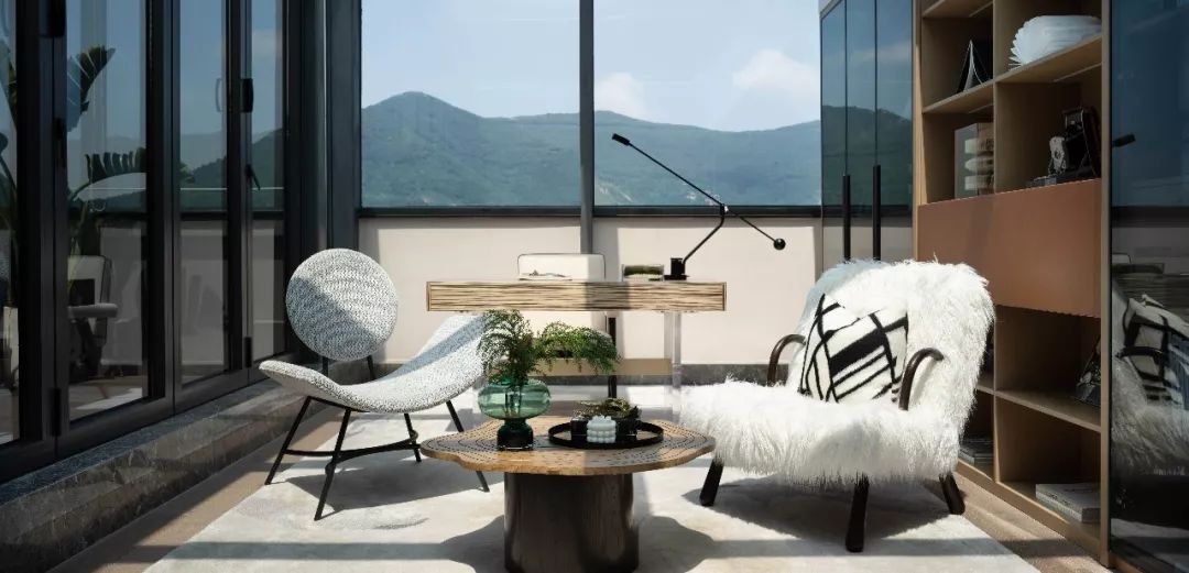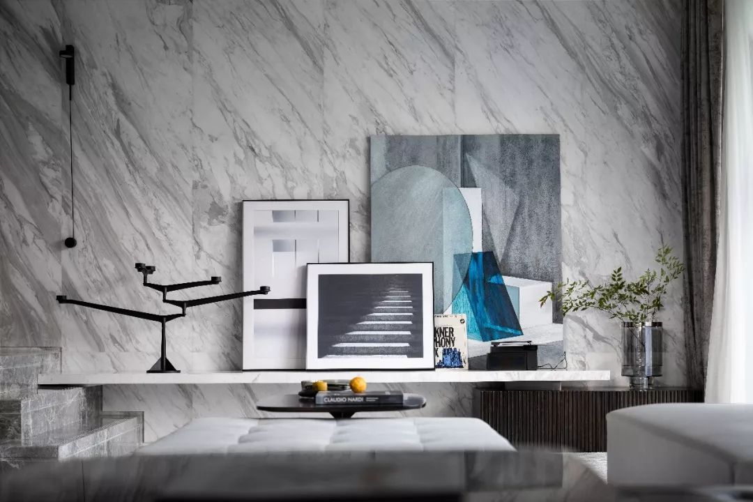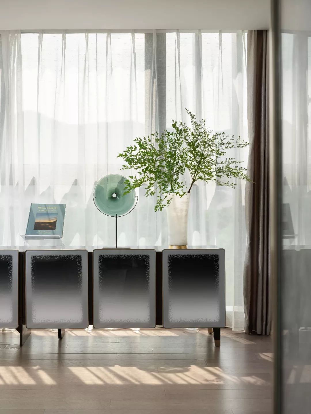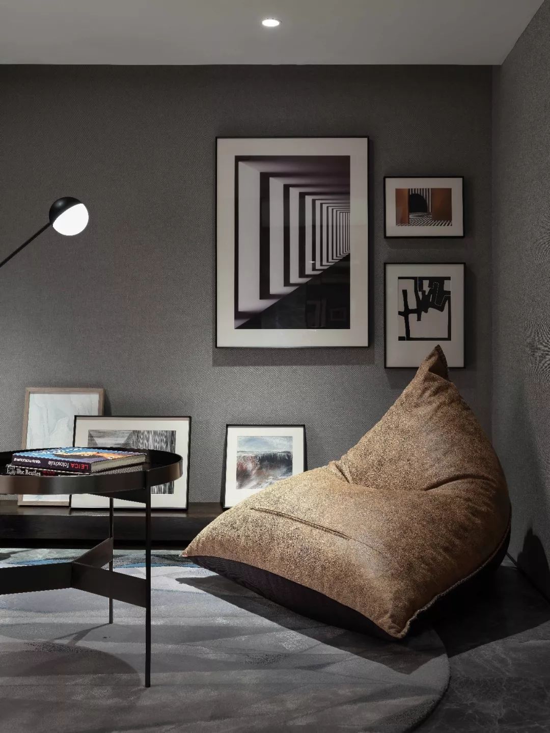 大象山舍·上叠&下叠 项目地址| 苏州 项目名称 | 万科·大象山舍 室内设计 | LSD interior design 空间摄影 | 聿摄影 在这个项目中,由于“叠拼”的建筑特性,当“实验”完成后,美成为了一种拥有具体形态的两类气质,作用于空间之内。上叠柔和浪漫,下叠硬朗理性,和而不同,却都是“美”的延伸与外化。 苏州大象山舍上叠 上叠空间包含三至五层,每层依据不同的功能划分呈现出了层层递进的空间逻辑。三层主要设置为客餐厅、厨房及长辈房等区域。 餐厅一侧,我们通过加扩原空间阳台的位置,最大限度地纳入室外的自然之景,与客厅区一并形成了双面采光观景的空间效果。 三层的长辈房,同样在一侧加入了整面的自然采光玻璃墙。自然哑光与手工质感的黑灰色系床品,与温润的木饰面搭配。 四层的主卧及儿童房区域延续了空间对于光的追求,皆以整面墙的落地玻璃设置使每个空间呈现为“对外打开”的状态。 我们以色彩烘托空间氛围,也以色彩构筑空间属性。男孩房以蓝色为空间主色调,我们以蓝色与白色的对比来延续空间的活力。 拾阶而上,进入到顶层空间。这里增设了家政间、亲子阅读空间,及半户外露台等实用功能空间。 傍晚时,由山林之间而来的清风拂面,我们依坐,围靠在此处,静候星辰点亮夜空。 苏州大象山舍下叠 下叠空间包含负一层至二层平面区域。由一面金属网纹的立面墙体自上而下贯穿而成。 两面巨大的落地窗,将室外花园庭院的光色与景致引入内部,俯仰之间,皆是满目的绿意与自然的朗阔之貌。 主卧延续了简约的设计调性,但却不是一览无余的毫无修饰,而是“大处着眼,小处着手”的设计之道。 蓝绿色的点缀,成为了男孩房脱颖而出一个亮点。黑白灰的主色调之中,蓝色画作、绿色靠枕,于沉稳之中凸显年轻一代的俏皮与活力。 餐厅被置于负一层与夹层空间半围合的区域处,透光石与扪布饰面的拼贴,呈现出了一个中式围餐的就餐氛围。 在以“幽暗”见长的地下空间,光的营造变得至关重要。我们将原建筑北面及西北面的两个采光井打通,将自然光引入负一层健身房及夹层茶室等区域,微微一束,却也是生活的诗意。
