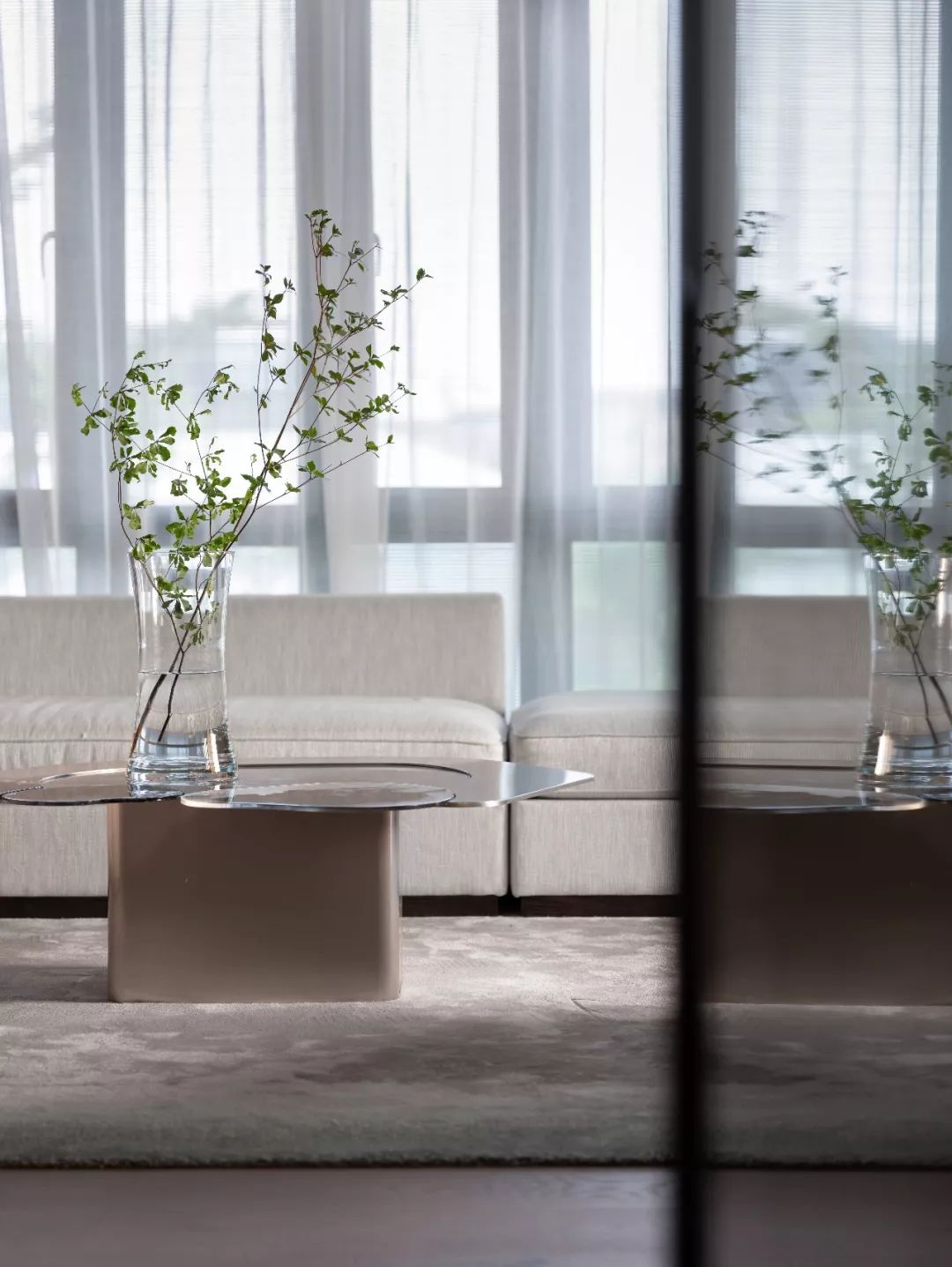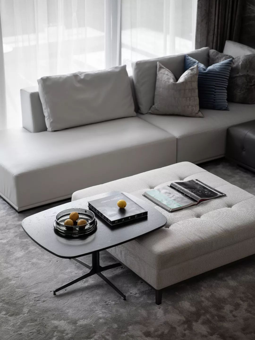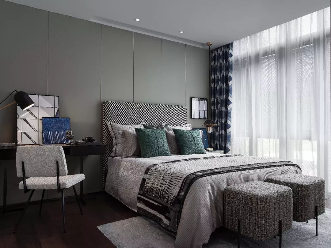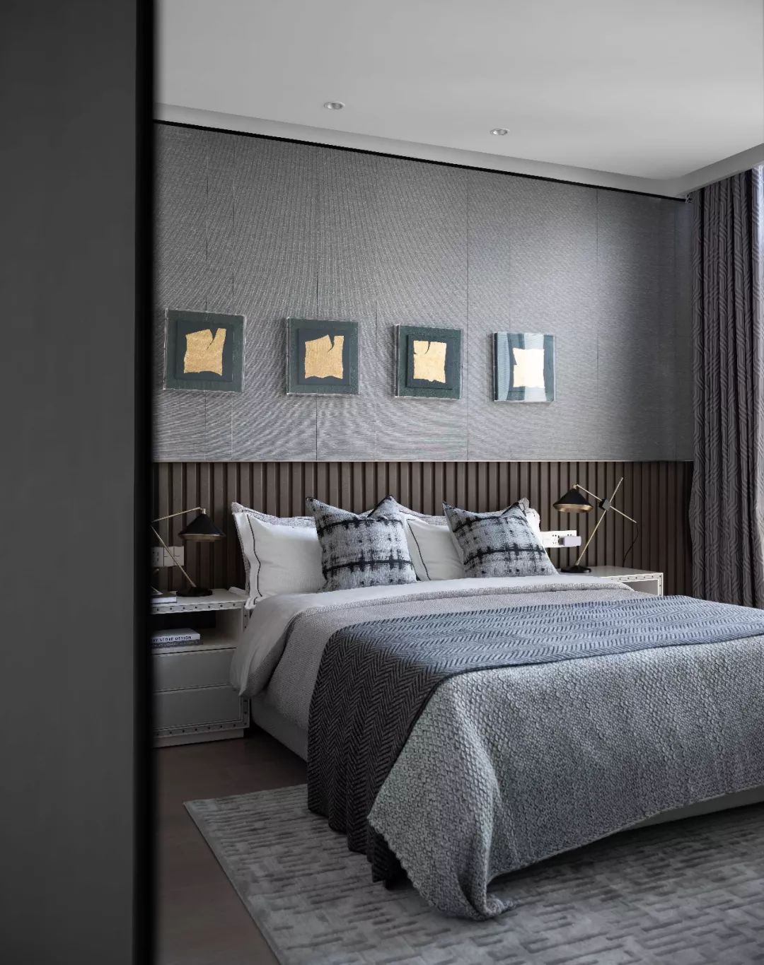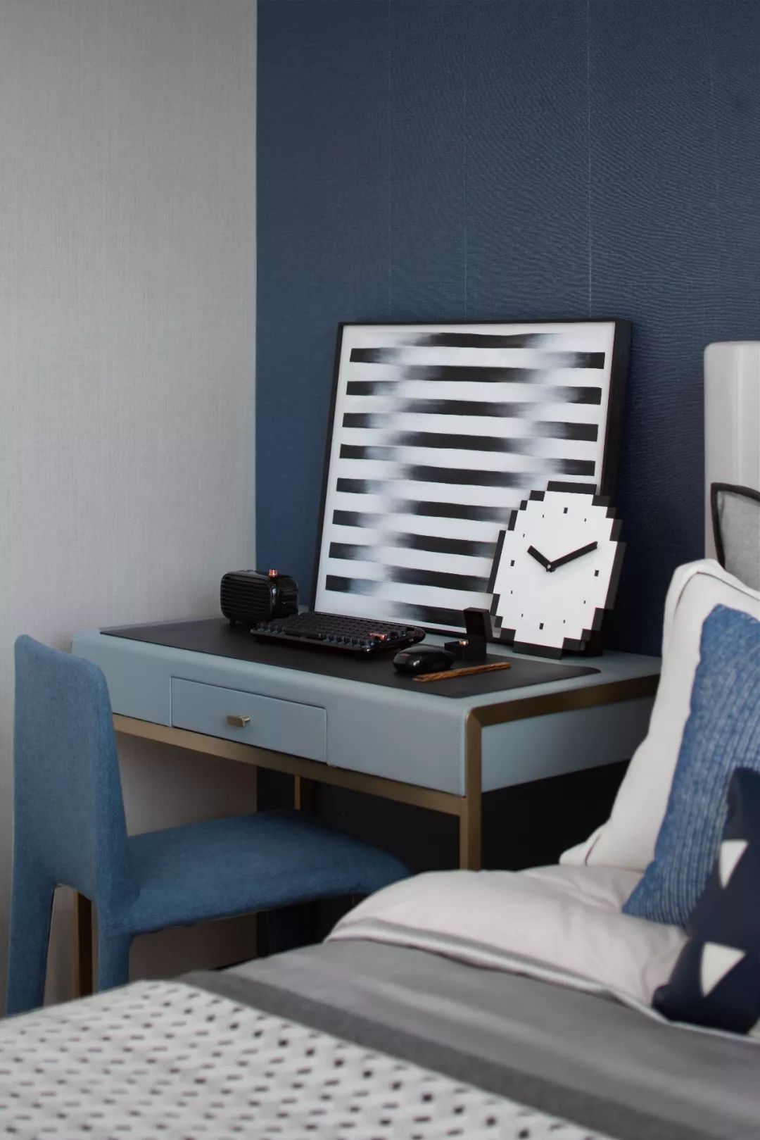 大象山舍·上叠&下叠 项目地址| 苏州 项目名称 | 万科·大象山舍 室内设计 | LSD interior design 空间摄影 | 聿摄影 在这个项目中,由于“叠拼”的建筑特性,当“实验”完成后,美成为了一种拥有具体形态的两类气质,作用于空间之内。上叠柔和浪漫,下叠硬朗理性,和而不同,却都是“美”的延伸与外化。 苏州大象山舍上叠 上叠空间包含三至五层,每层依据不同的功能划分呈现出了层层递进的空间逻辑。三层主要设置为客餐厅、厨房及长辈房等区域。 餐厅一侧,我们通过加扩原空间阳台的位置,最大限度地纳入室外的自然之景,与客厅区一并形成了双面采光观景的空间效果。 三层的长辈房,同样在一侧加入了整面的自然采光玻璃墙。自然哑光与手工质感的黑灰色系床品,与温润的木饰面搭配。 四层的主卧及儿童房区域延续了空间对于光的追求,皆以整面墙的落地玻璃设置使每个空间呈现为“对外打开”的状态。 我们以色彩烘托空间氛围,也以色彩构筑空间属性。男孩房以蓝色为空间主色调,我们以蓝色与白色的对比来延续空间的活力。 拾阶而上,进入到顶层空间。这里增设了家政间、亲子阅读空间,及半户外露台等实用功能空间。 傍晚时,由山林之间而来的清风拂面,我们依坐,围靠在此处,静候星辰点亮夜空。 苏州大象山舍下叠 下叠空间包含负一层至二层平面区域。由一面金属网纹的立面墙体自上而下贯穿而成。 两面巨大的落地窗,将室外花园庭院的光色与景致引入内部,俯仰之间,皆是满目的绿意与自然的朗阔之貌。 主卧延续了简约的设计调性,但却不是一览无余的毫无修饰,而是“大处着眼,小处着手”的设计之道。 蓝绿色的点缀,成为了男孩房脱颖而出一个亮点。黑白灰的主色调之中,蓝色画作、绿色靠枕,于沉稳之中凸显年轻一代的俏皮与活力。 餐厅被置于负一层与夹层空间半围合的区域处,透光石与扪布饰面的拼贴,呈现出了一个中式围餐的就餐氛围。 在以“幽暗”见长的地下空间,光的营造变得至关重要。我们将原建筑北面及西北面的两个采光井打通,将自然光引入负一层健身房及夹层茶室等区域,微微一束,却也是生活的诗意。