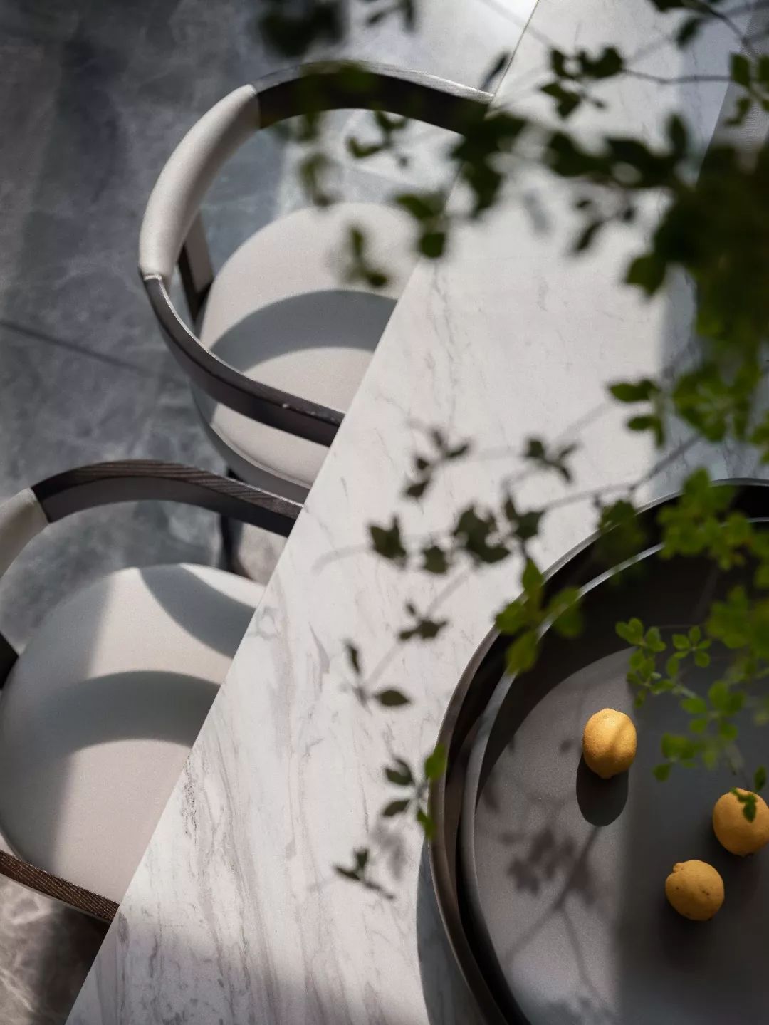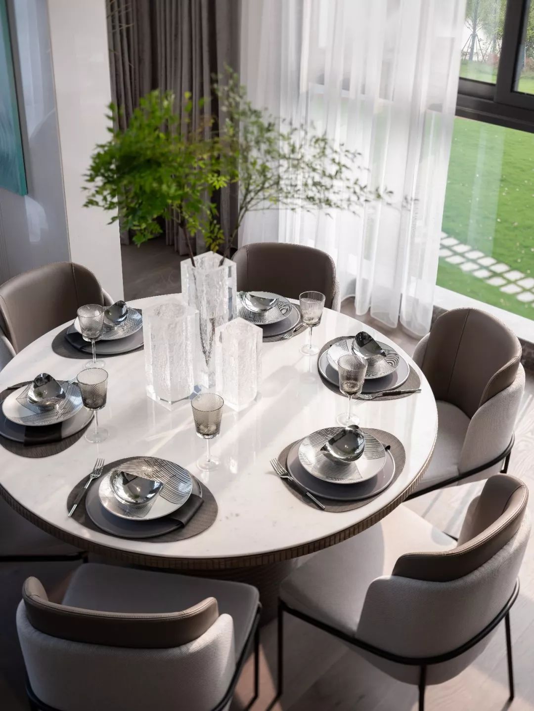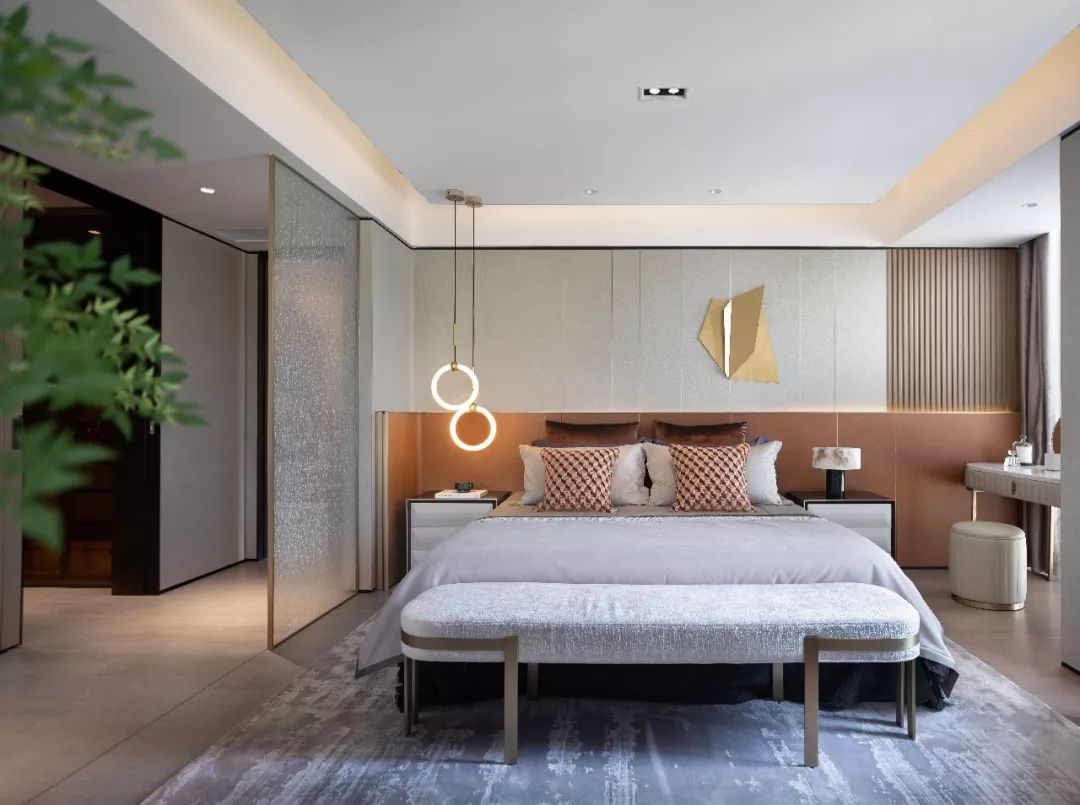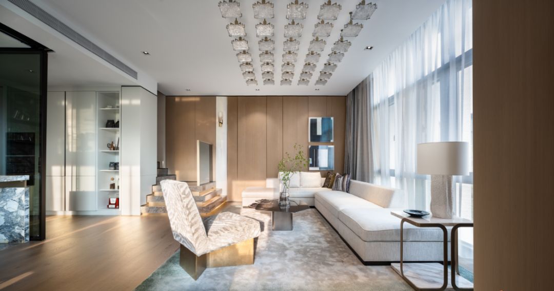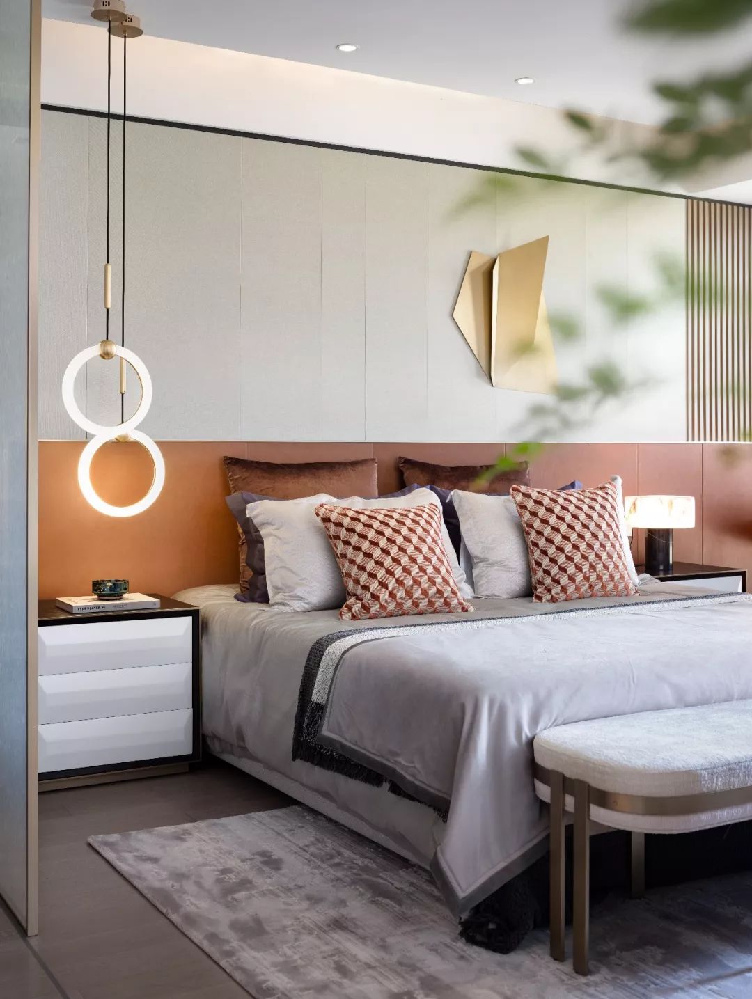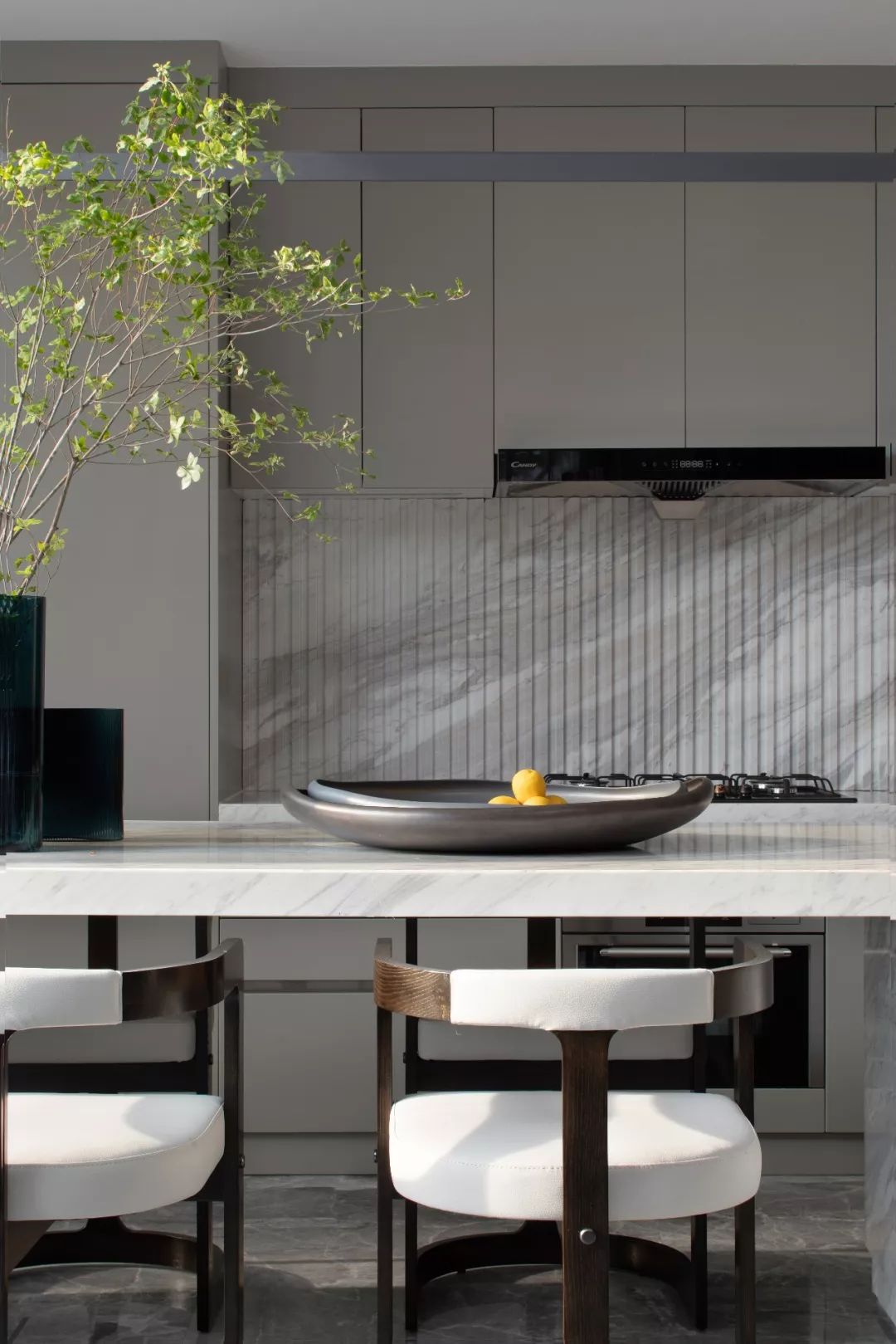 大象山舍·上叠&下叠 项目地址| 苏州 项目名称 | 万科·大象山舍 室内设计 | LSD interior design 空间摄影 | 聿摄影 在这个项目中,由于“叠拼”的建筑特性,当“实验”完成后,美成为了一种拥有具体形态的两类气质,作用于空间之内。上叠柔和浪漫,下叠硬朗理性,和而不同,却都是“美”的延伸与外化。 苏州大象山舍上叠 上叠空间包含三至五层,每层依据不同的功能划分呈现出了层层递进的空间逻辑。三层主要设置为客餐厅、厨房及长辈房等区域。 餐厅一侧,我们通过加扩原空间阳台的位置,最大限度地纳入室外的自然之景,与客厅区一并形成了双面采光观景的空间效果。 三层的长辈房,同样在一侧加入了整面的自然采光玻璃墙。自然哑光与手工质感的黑灰色系床品,与温润的木饰面搭配。 四层的主卧及儿童房区域延续了空间对于光的追求,皆以整面墙的落地玻璃设置使每个空间呈现为“对外打开”的状态。 我们以色彩烘托空间氛围,也以色彩构筑空间属性。男孩房以蓝色为空间主色调,我们以蓝色与白色的对比来延续空间的活力。 拾阶而上,进入到顶层空间。这里增设了家政间、亲子阅读空间,及半户外露台等实用功能空间。 傍晚时,由山林之间而来的清风拂面,我们依坐,围靠在此处,静候星辰点亮夜空。 苏州大象山舍下叠 下叠空间包含负一层至二层平面区域。由一面金属网纹的立面墙体自上而下贯穿而成。 两面巨大的落地窗,将室外花园庭院的光色与景致引入内部,俯仰之间,皆是满目的绿意与自然的朗阔之貌。 主卧延续了简约的设计调性,但却不是一览无余的毫无修饰,而是“大处着眼,小处着手”的设计之道。 蓝绿色的点缀,成为了男孩房脱颖而出一个亮点。黑白灰的主色调之中,蓝色画作、绿色靠枕,于沉稳之中凸显年轻一代的俏皮与活力。 餐厅被置于负一层与夹层空间半围合的区域处,透光石与扪布饰面的拼贴,呈现出了一个中式围餐的就餐氛围。 在以“幽暗”见长的地下空间,光的营造变得至关重要。我们将原建筑北面及西北面的两个采光井打通,将自然光引入负一层健身房及夹层茶室等区域,微微一束,却也是生活的诗意。