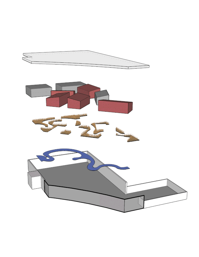 在本次的设计理念中用黄河文化来打造整个空间气氛。于是在空间中设计了长约50米的黄河之道,设置了8个高低不同的金属盒子,除此之外还用到了120平米的麦田,5种昆虫这个概念。 We are dedicated to present a unique design to everyone. We have implied cultural elements of the Yellow River into the design concept.We designed a 50 meters long passage in according with the track of the yellow river throughout the space. Eight metal boxes with different heights are attached along the passage.In addition to this, we have also created 120 sq. of wheat fields and five different species of insects.