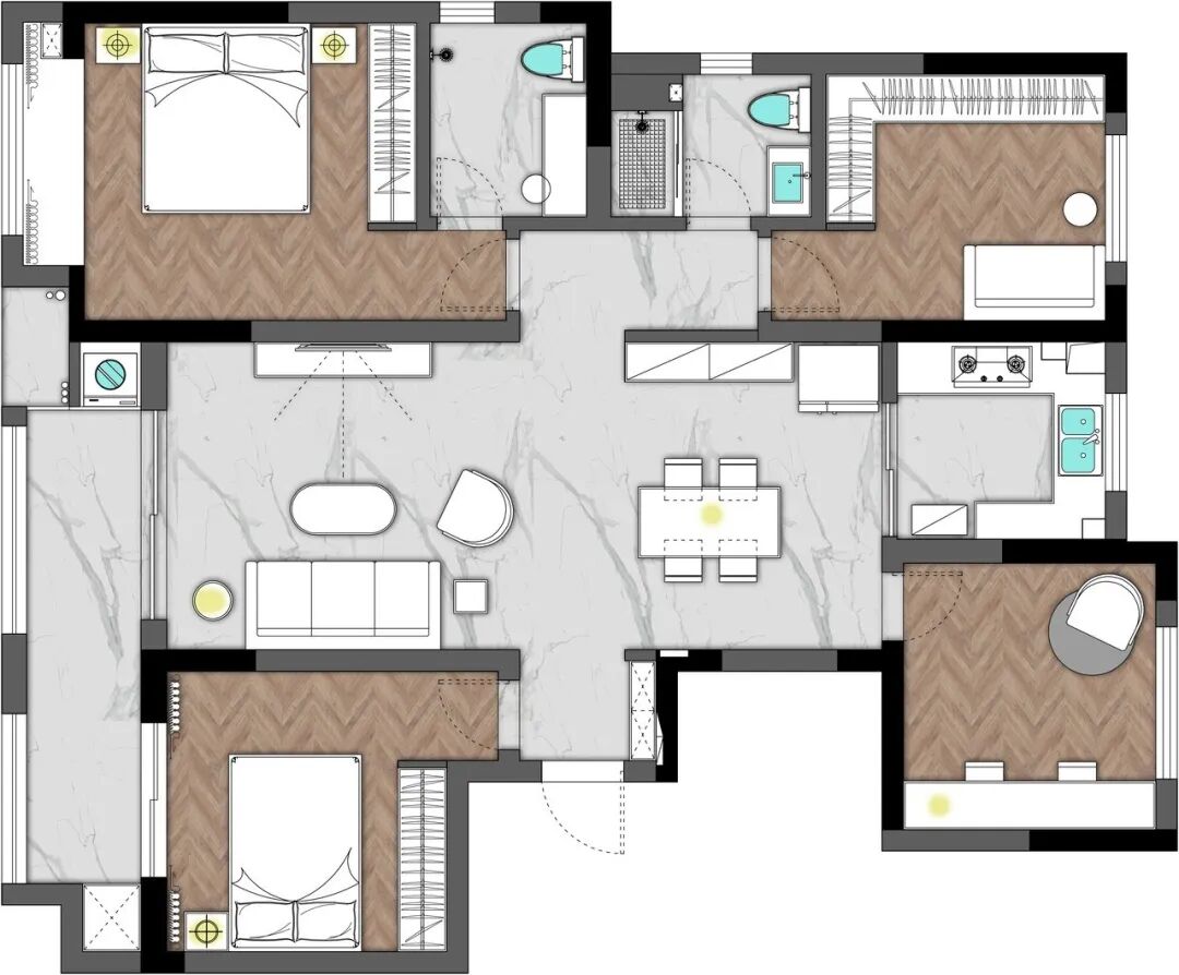 本案原始户型布局上没有太大的问题,属于户型方正,南北通透的户型,考虑到业主的工作与时间精力,对于房屋的改造,设计师选择在尽量不动硬装的情况下进行设计。