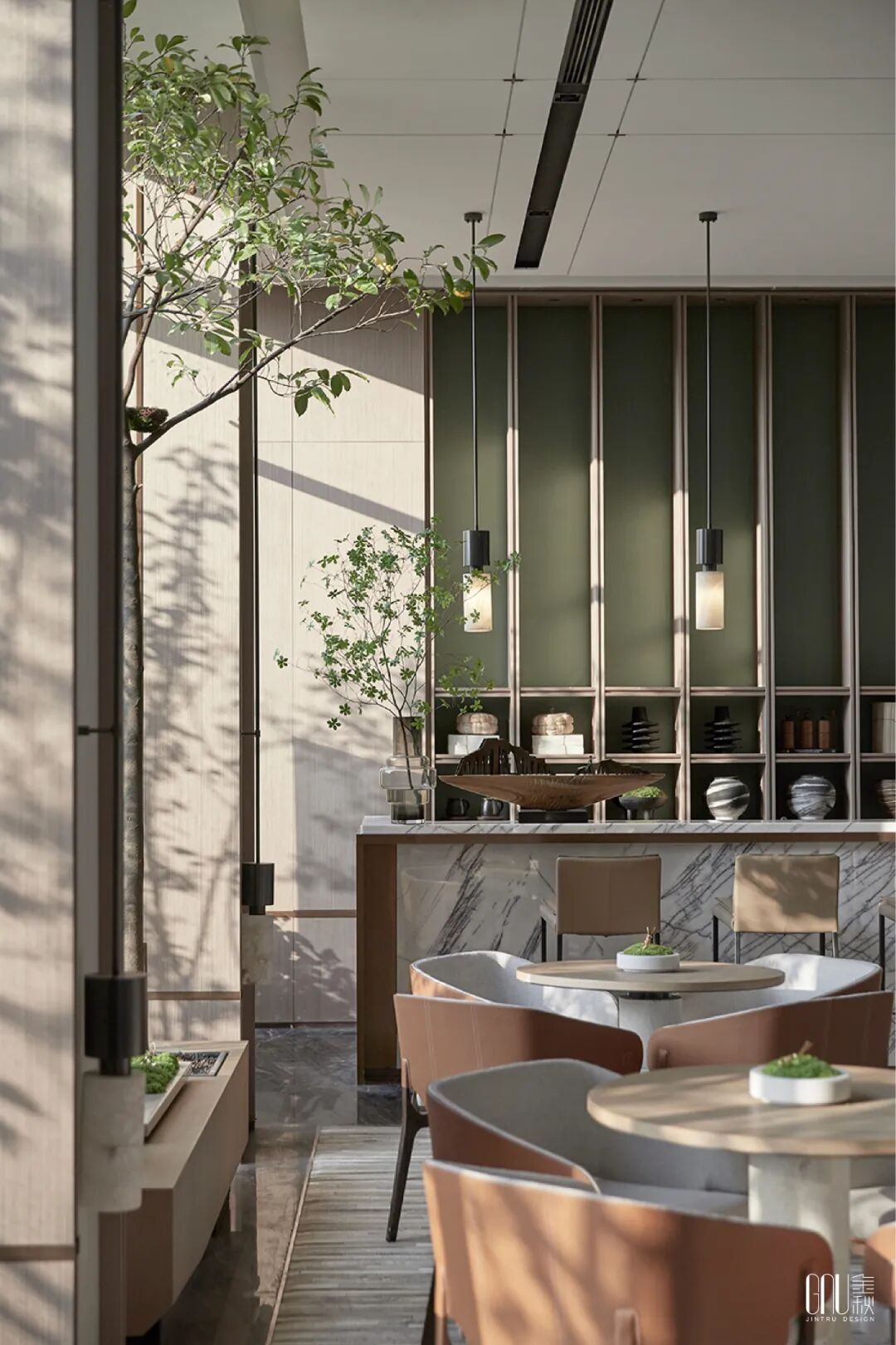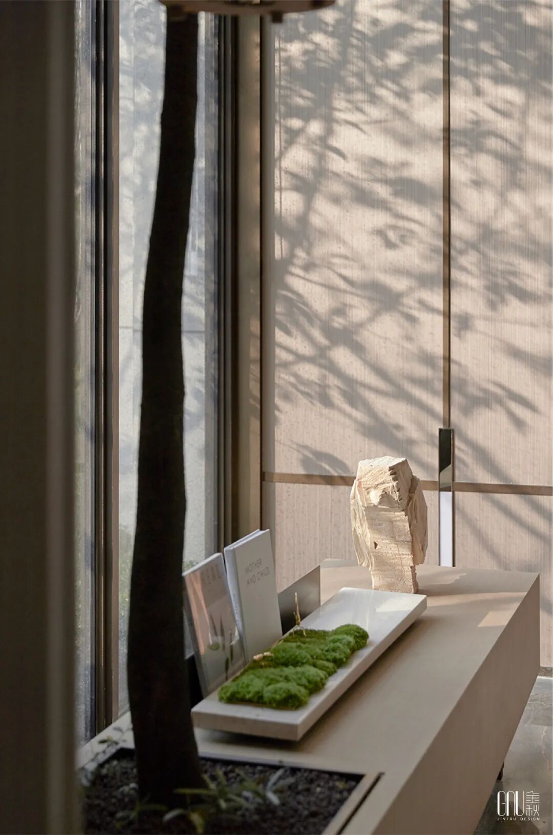 一缕暖阳,为景色中的肌理带来更丰富层次。当阳光透过小窗,在墙壁上投照出浅浅淡淡温柔的树影、斑驳的光影,交错互映间,展现出不同季节变化的景象,仿佛让人置身漫步于公园里的绿林之中,感受视觉与心灵上的双重涤荡。