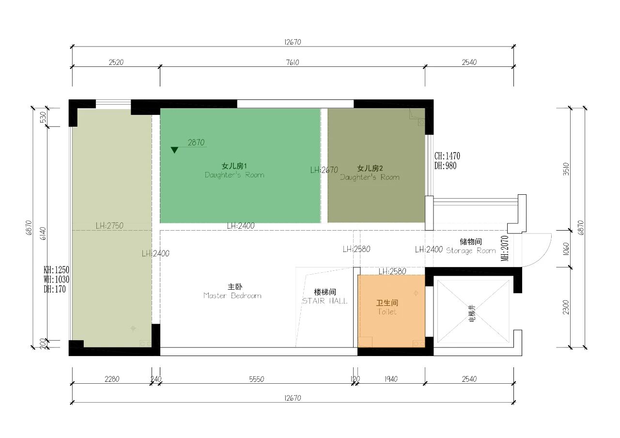 二层空间是静区原结构是一个常规但实用的三房布局从结构图能看出2个问题,女孩房二比较小且朝北楼上只有一个卫生间一家人在后期使用中可能会存在冲突
