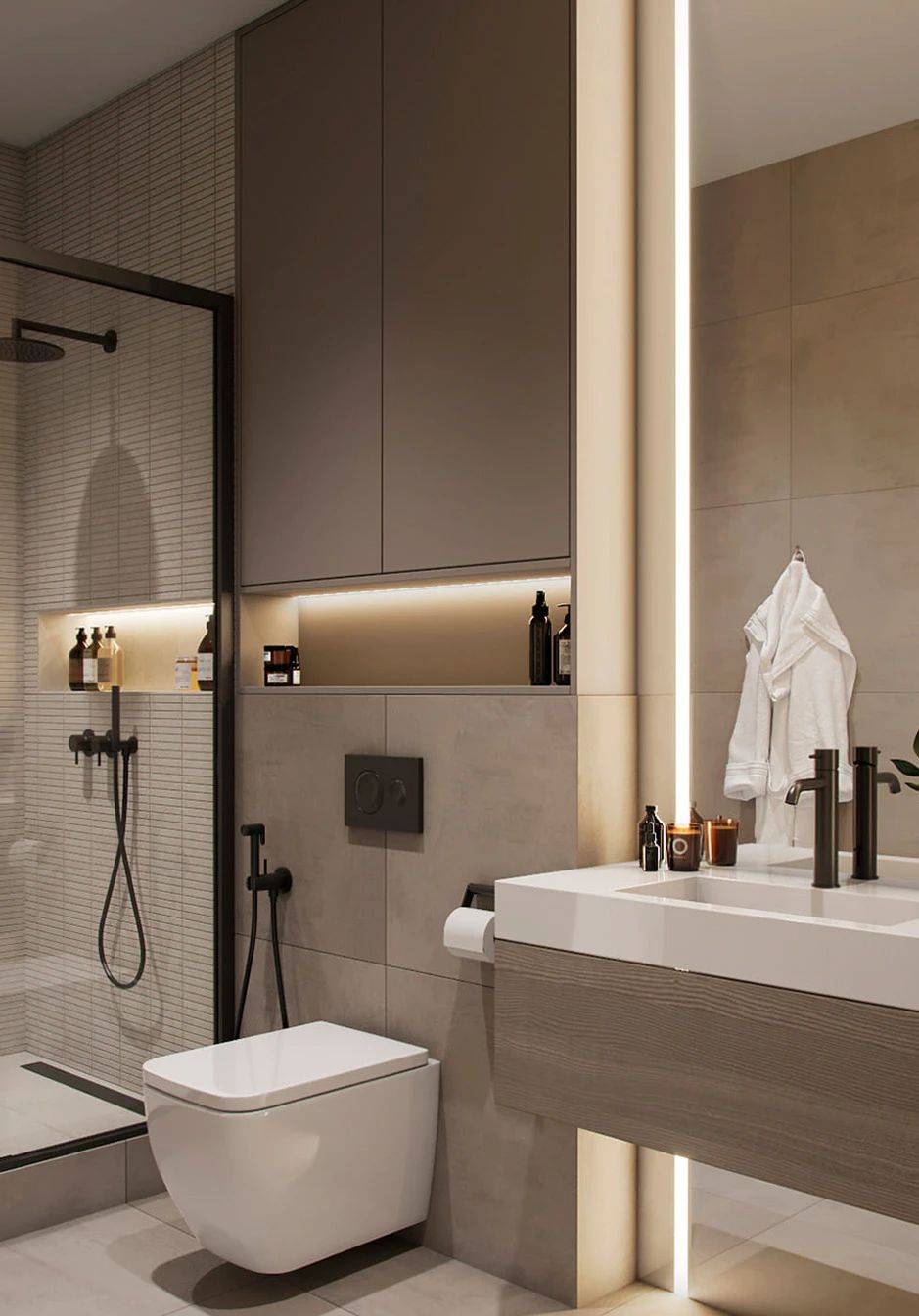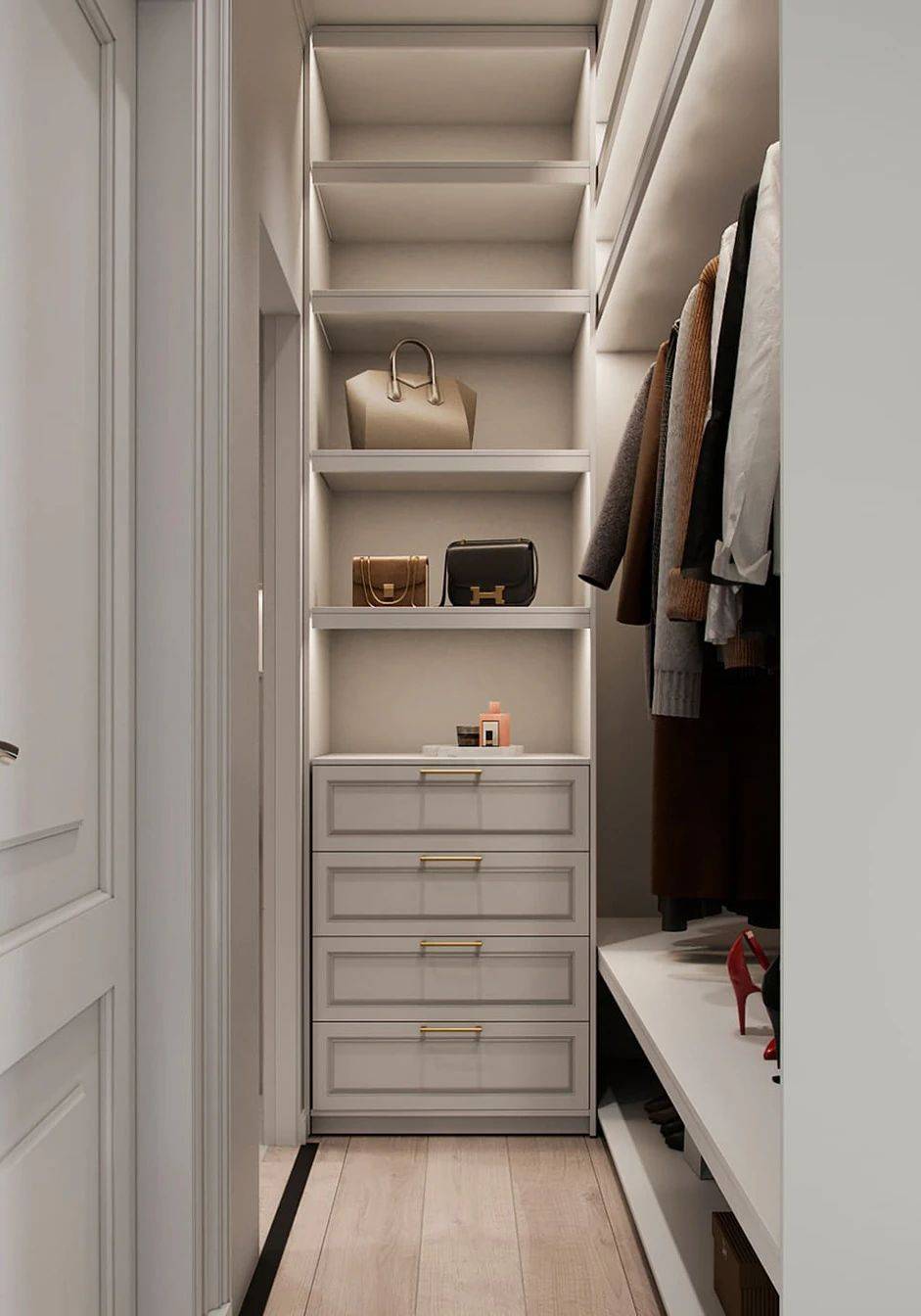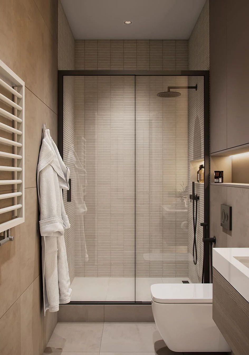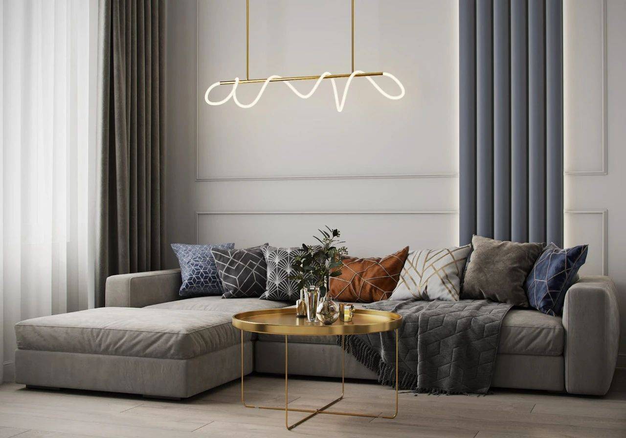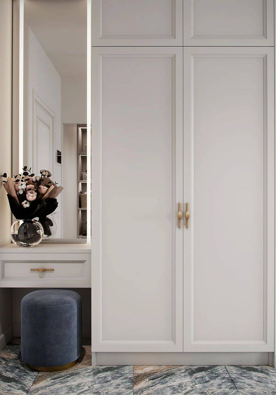 BODES Studio设计新作,面积90㎡的私人住宅位于莫斯科,空间素净简约的色调,高档细腻的材质激发非凡大气的视觉触感,黄铜色金属与部分色彩局部告别平静气氛,倾注一份轻快灵动的美感。 客厅灰色的布艺沙发,黄铜色的茶几,曲线形状的艺术吊灯,不同材质释放的灵魂在空间之中糅杂成景,透过材质本身传达温润、温暖的空间感受。 餐厨一体,厨房配有内置电器,橱柜的表面尽可能与墙面融合,黄色的餐椅和黄铜色相呼应,流动的美态本身就具有让人离不开视线的艺术张力。 餐厅旁边设计师利用窗前的位置设计成一个休闲空间,光线充足,看着视觉上还是让人感觉挺放松,享受生活的平淡温馨的小幸福。 玄关素雅的色调简洁大方,深色的石头地板与客厅的木地板形成鲜明对比,一旁是内置的镜子和收纳柜,配以深蓝色换鞋凳,自然大方,看着舒服。 卫生间整体以浅灰色磁砖为主,黑色的金属搭配,干湿分离,时尚质感的灯光渲染,让整个空间更有艺术感。 主卧采用蓝白色调为主,蕴含着舒适与慵懒,丝毫没有违和感,渐渐安抚了一天的浮躁,终于能静下神来,感受其中的静谧和光明。 卧室进门位置设计师利用床头的背景设计一个简易衣帽间,可以存放小物品,纺织饰品的装饰,营造出最舒适宜人的氛围。 主卫通过规划分割,完美实现功能与美感的结合,盎然有趣。