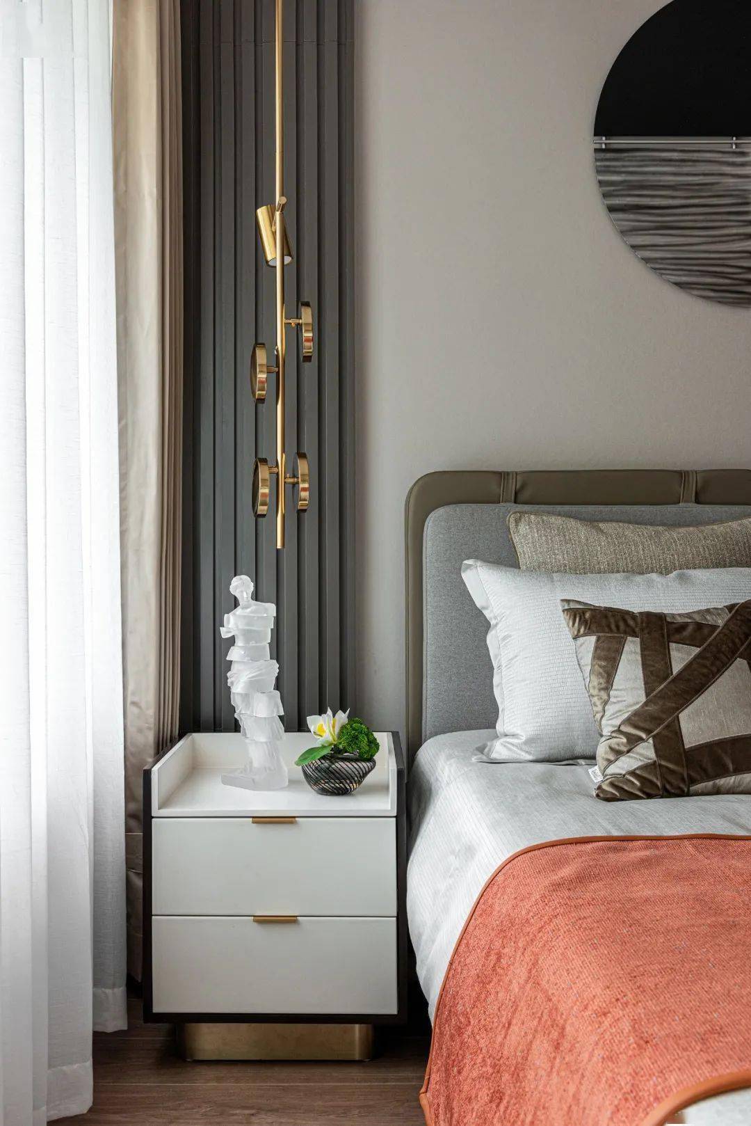 “美好的空间来自于对文脉和时代的认同,对城市和自然的尊重,对人性和理想的追求,对空间颜色及物体质感的完善,以及对于未来生活方式和行为的设想。” ——The Designer. 01 80户型-现代简约风格 置身 客厅,与它温吞细腻的质感相迎,平添一种不疾不徐的从容心境。一切都柔和宁谧,没有锐利的尖角,惬意休闲之外,更在意的是空间肌理带给人心的沐春抚慰。 我们希望通过光、空间、材料之间的微妙感官,形成一种当代生活美学。空间深浅不一的灰与白作为基调,以绿色作为点缀,线条明朗而直接。 空间通过线条的改变来打破空间原有的稳定,不规则围合的茶几,碰撞出一种微妙的平衡感,敛去了方正空间的沉闷。 开放式的客餐厅增加了家人间的亲密互动,便于情感的交流与沟通,“合”亦是为了更好的“开”。简洁、素雅的空间表达,还原了家的放松、舒适状态。家与主人的情感是浓厚的、也是细腻的。 主卧温馨且大面积运用浅色的木饰面,以雅致浅灰色基层色调,春意盎然的芳草绿点缀空间,铺叙自然质朴的样貌。繁与简,理性的逻辑中内涵自然与人生的哲理。 儿童房 / 梦幻气球主题 02 108户型-意式轻奢风格 在经典与现代之间,平衡着功能性与现代感,素雅的色调搭配现代而又活力的“爱马仕橙”,沉稳而不失时尚的特质。 设计与当代艺术的结合,彰显着新时代对生活品质的精神追求,形成现代轻奢、精致与细腻并举的空间氛围,感受雅奢 爱马仕气质之风。 客厅-纷华靡丽 在原有硬装的灰色基调里加入高贵的橙色,让整个空间色彩丰富温馨治愈,大理石、皮革、金属、布艺、胡桃木等材质的运用融合,提升了空间的品质感。 餐厅-时光印记 开放性的厨房与餐厅相连,宽敞、明亮。灯光与线条无限延伸,穿梭与餐厅与厨房之间。 餐厅记录着全家人最平凡的快乐时光,一餐一碟一杯,足以。一幅简约线条装饰画象征着时间的印痕,应征着梦想的记忆。 书房-闲暇时光 书房以女主服装设计师职业为切入点,在营造不凡艺术格调的基础上,为她建立一个相对个人化的、丰盈的精神世界。在书房里,闻着书香,探索精神文化的实质,心灵的回归。 主卧-乐享生活 日光透过纱帘照进室内,光斑细柔,在一种自在随意的舒适中,享受品质生活的美好与安然。 儿童房-捕捉梦影 儿童房营造遨游太空,穿梭于星际间捕捉梦影的场景。想象银河里藏匿着数亿光年的秘密,群星璀璨的令人着迷神往。 平面图 ▼ ▲80户型 108户型 项目名称 | 沈阳富禹 · 金科繁梦里样板间 项目地址 | 辽宁 沈阳 开 发 商 | 金科地产 项目面积 | 80㎡、108㎡ 软装设计 | 树美国内设计中心 设计团队 | 白玉娟、巩静波 灯光产品设计 | 宽窄灯具设计制造 项目摄影 | 高腾云