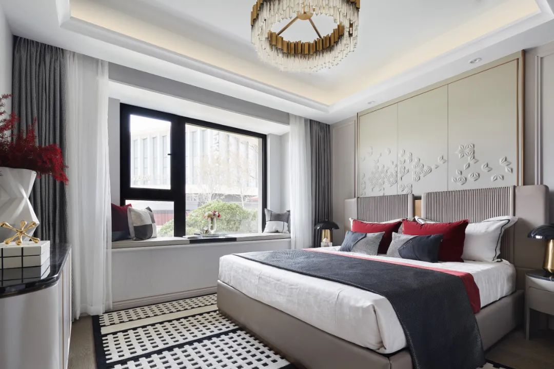 主卧 HOST BEDROOM 另一抹红则给主卧带来热情而炽热的个性温度,时尚摆饰穿插在整个主卧空间中。