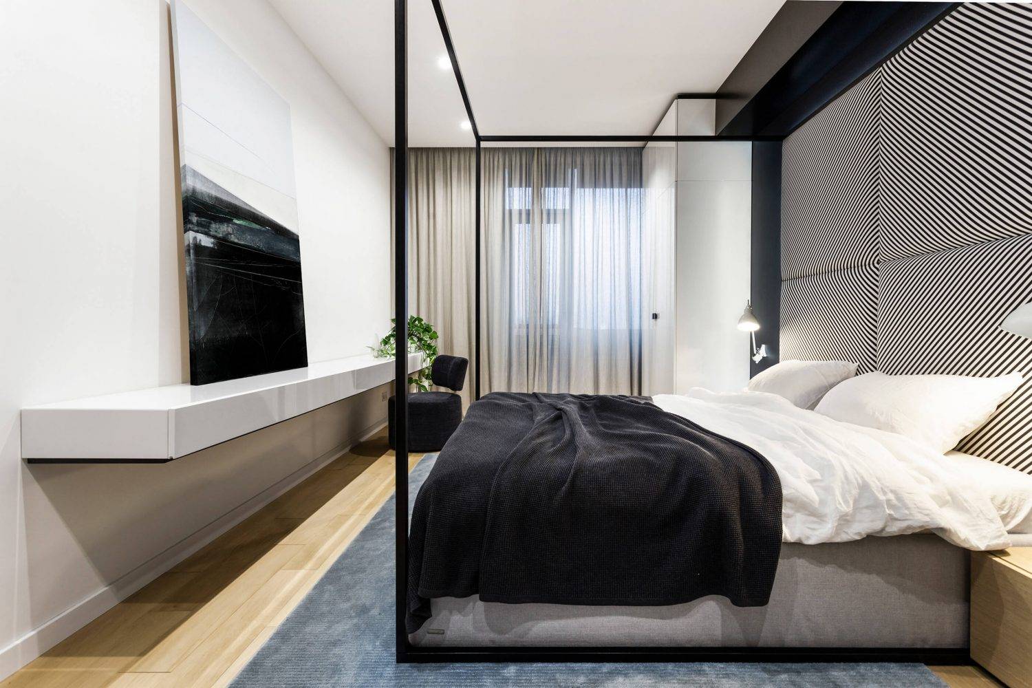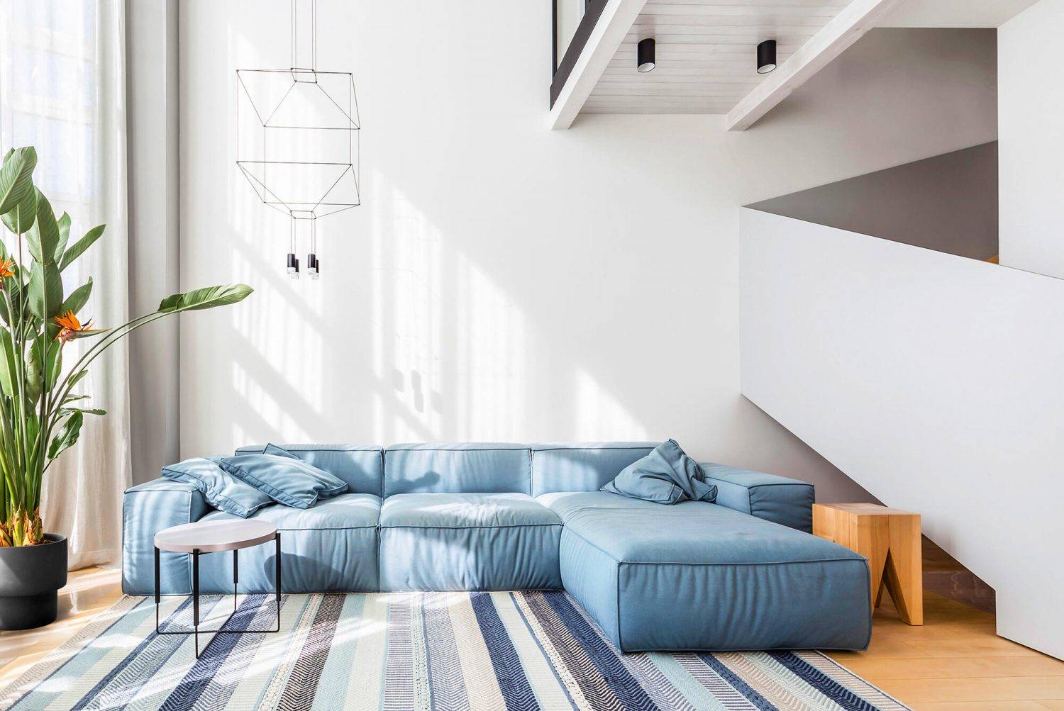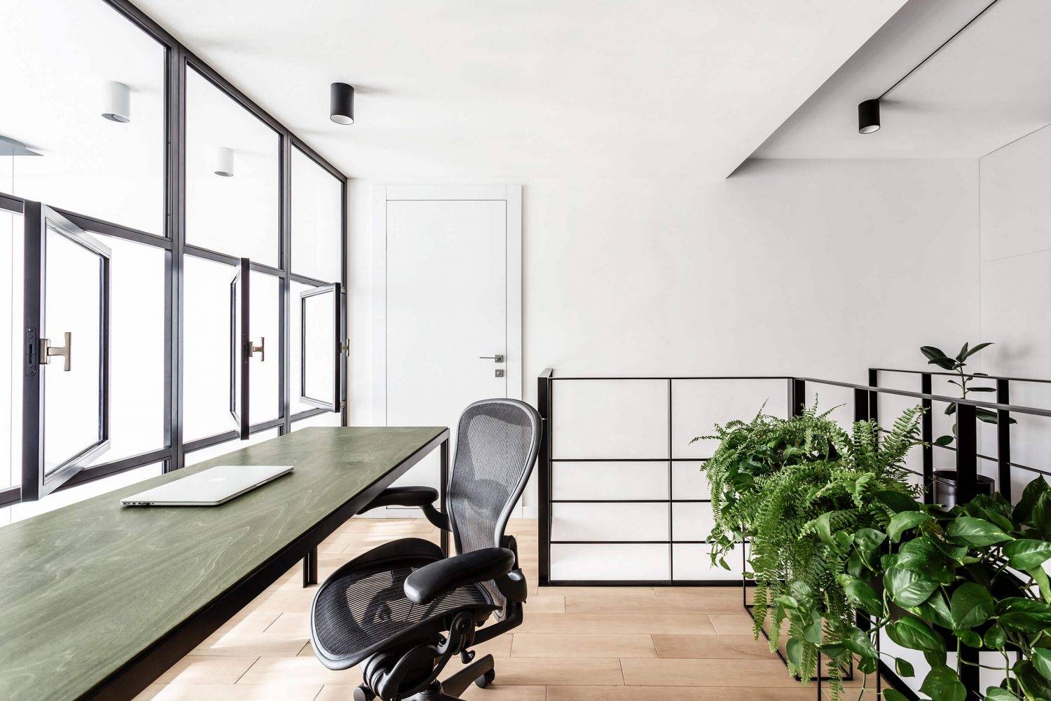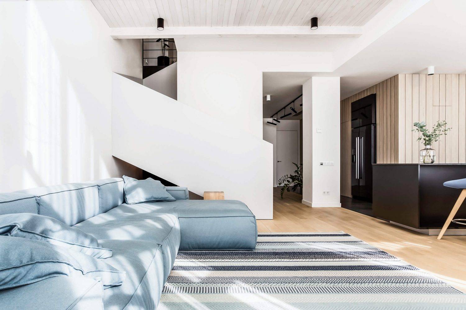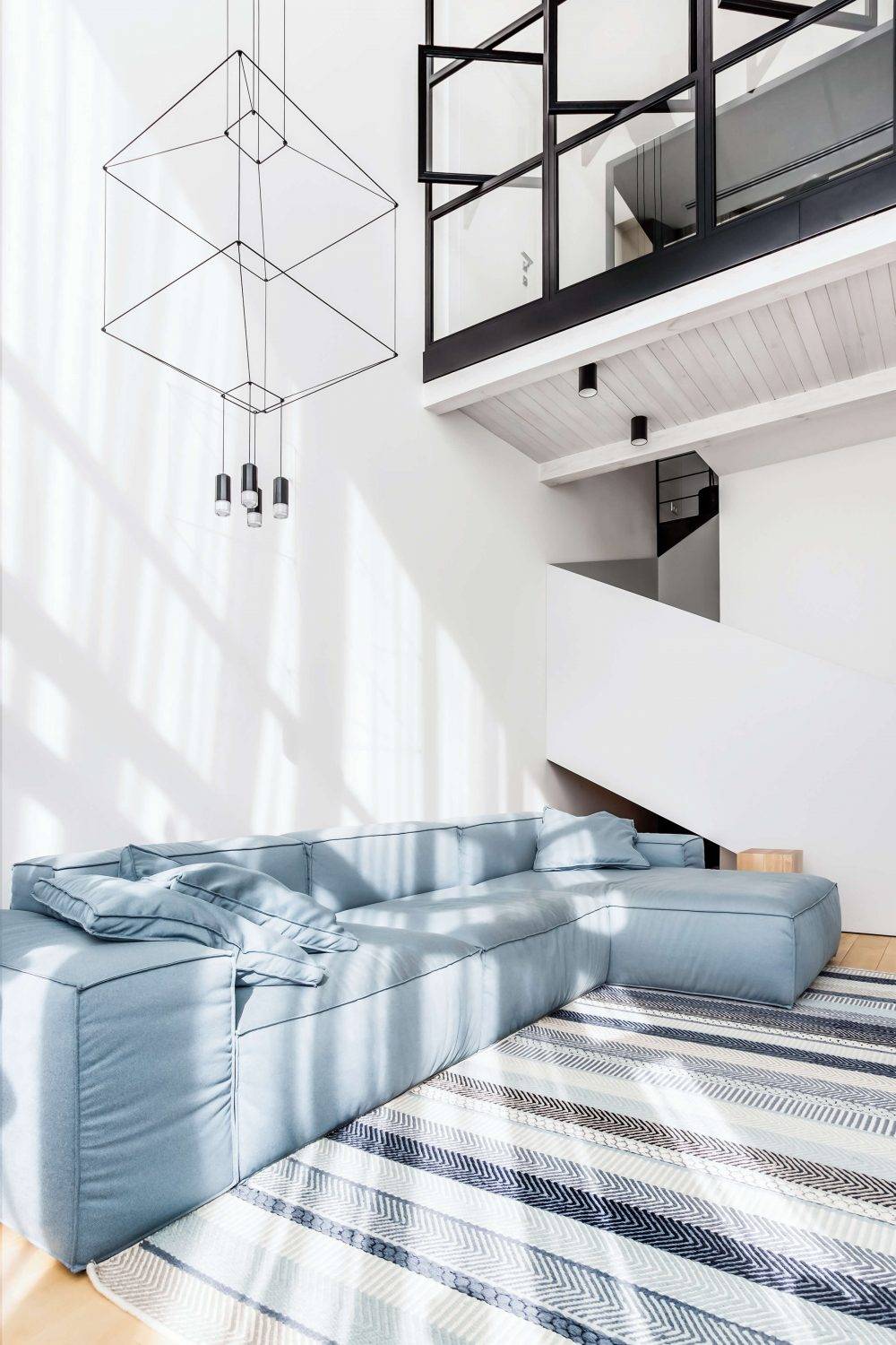 Lugerin Architects设计了一套LOFT公寓,位于乌克兰基辅的Sonyachna Brama住宅区。 这栋两层LOFT于2019年完工,总建筑面积为140平方米。 一楼有:宽敞的大厅,自然采光,卧室,浴室,客用浴室,工具间。起居区还有一个开放空间–厨房,餐厅和带通向二楼楼梯的起居室。在第二层有办公室,艺术工作室和更衣室。 自然光可以完全照射在客厅区域。 该公寓的优势之一是两层挑高的客厅。高高的天花板,宽敞的玻璃窗,富有表现力的楼梯建筑,二级建筑。所有这些创造了房间的独特形象。 △ 平面布置图