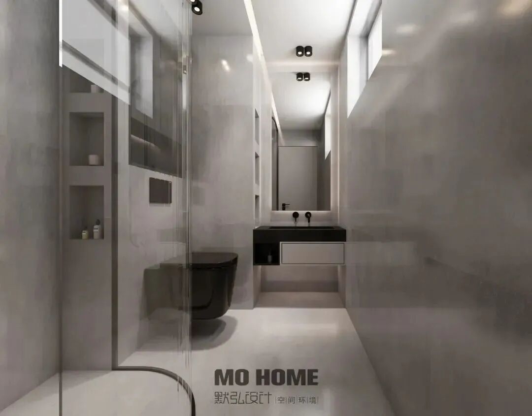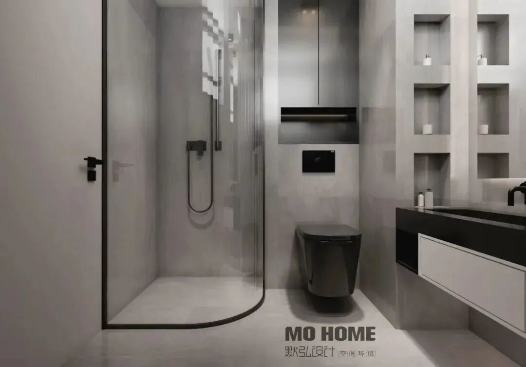 -扩宽后的客卫通过规划设计,打造一个透明的淋浴房,使用上实现干湿分离。浴室柜与淋浴房的壁龛解决洗漱与沐浴用品的收纳问题,让空间整洁干净。