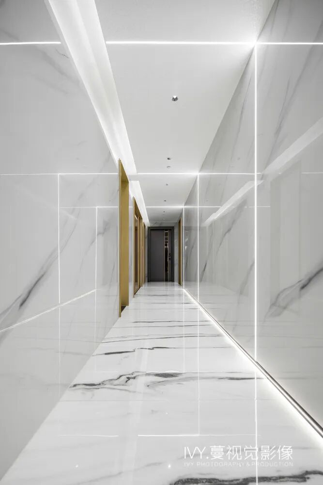 原本走廊狭长、乏味单调,经过设计师的巧妙处理,走廊变成了一条穿梭时光的隧道,让整个空间灵动起来。穿行其中,仿佛置身星际时空,突破空间束缚,扩容了生活的维度。
