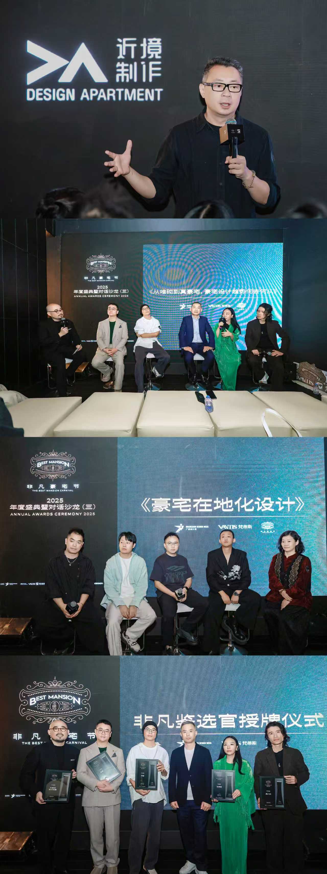 活动现场,唐忠汉带来主题分享,从其多年豪宅与高端住宅实践出发,系统梳理“真豪宅”的设计逻辑。他指出,经得起时间检验的豪宅,并不依赖短期视觉冲击,而是建立在秩序、比例、光线、动线与长期使用体验之上。设计的价值,不在于“看起来很豪”,而在于是否能够长期成立。随后的两场论坛对话分别围绕“从堆砌到真豪宅,豪宅设计趋势何去何从”“豪宅在地化设计”分别展开。嘉宾们认为,当材料、尺度与配置被无限复制,豪宅的差异化只能来自对生活方式与精神需求的真实回应。设计不再是一次性的完成,而是一种需要在时间中被持续验证的能力。当天,非凡豪宅节再次举行「非凡鉴选官」授牌仪式。该体系并非单一荣誉,而是一项基于专业共识的长期参与机制,将持续为行业提供更具参考价值的判断坐标。