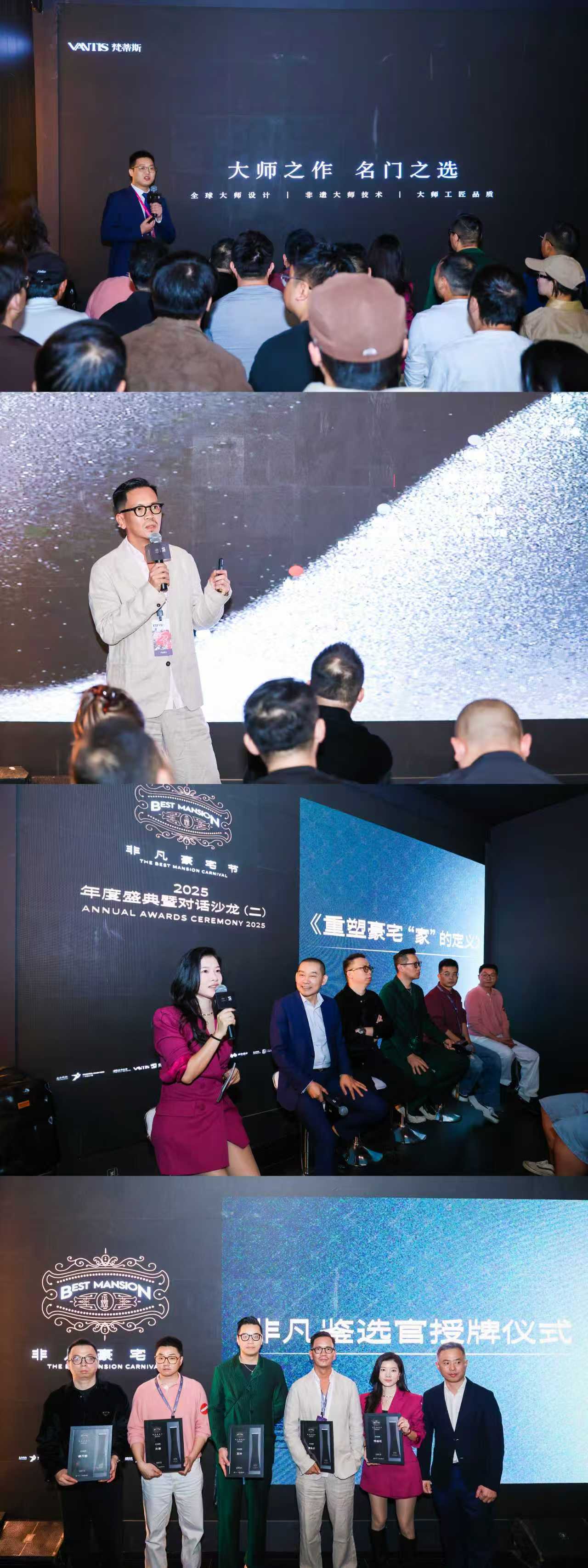 活动伊始,浙江华威家居集团总裁高丰在致辞中指出,当下的豪宅已从单一空间产品,转向承载生活方式与精神价值的综合载体。随后,梵蒂斯渠道运营总监叶波围绕品牌发展、设计共创与非凡豪宅节机制进行了系统分享,阐述中国高端制造如何在豪宅全案体系中形成稳定而可持续的支撑。黎水仁佳设计公司创始人、总设计师叶永志则结合其国内外豪宅项目经验,提出真正支撑设计走向国际的,并非风格复制,而是完整的表达权与长期服务能力。他以“合门承家”为切入点,将传统门文化、非遗工艺与当代设计语言重新整合,呈现出兼具东方根性与国际审美的豪宅表达。在随后的对话环节中,多位设计师围绕“豪宅出海”的现实问题展开深入交流,并逐渐形成共识:豪宅出海不是形式输出,而是系统能力、文化自信与长期价值的综合体现。活动尾声,非凡豪宅节举行“非凡鉴选官”授牌仪式,正式启动这一长期观察与共建机制,为中国豪宅在世界语境中的持续表达奠定专业基础。