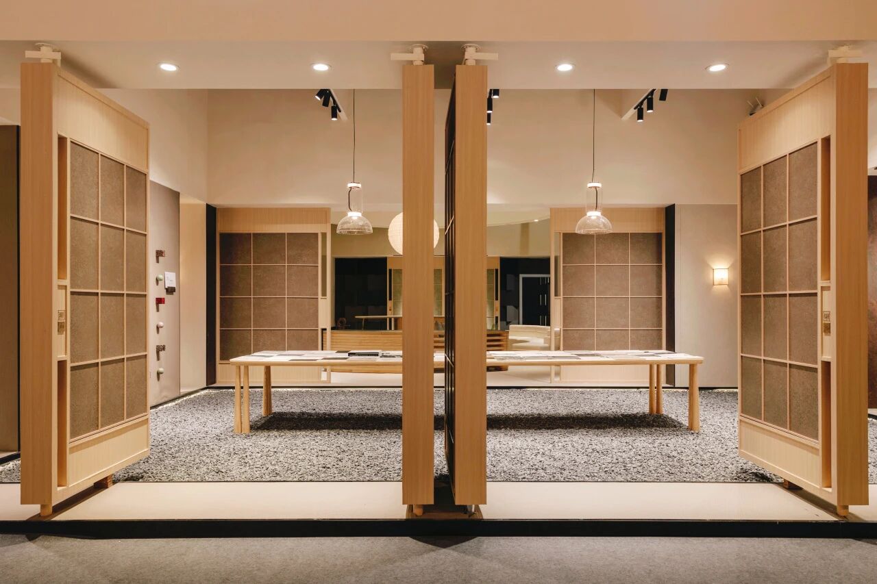 作为开发者大会2025年度盛典的第二大板块——主题展览,由顺辉天成岩板联合开发者大会美好研究顾问 行十设计 张威先生围绕年度主题展开策展,以《回家》为策展理念,会、食、憩、工、洁,五大场景围合共生,俯看恰成一个“回”字,暗合《回家》主题的深意。展览现场成为设计周的热门打卡地,获得业界一致好评。 这里的“会”从不是孤立的空间,而是以四大生活原境为支点,将“亲爱”的社交基因,融进入户迎客的热忱、餐厨小聚的烟火、休憩闲谈的惬意、案前交流的投契、洗漱晨昏的安然里。
