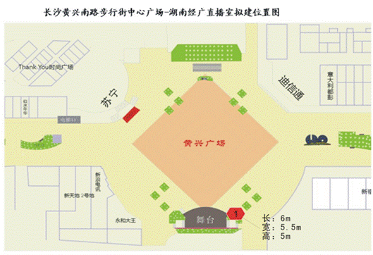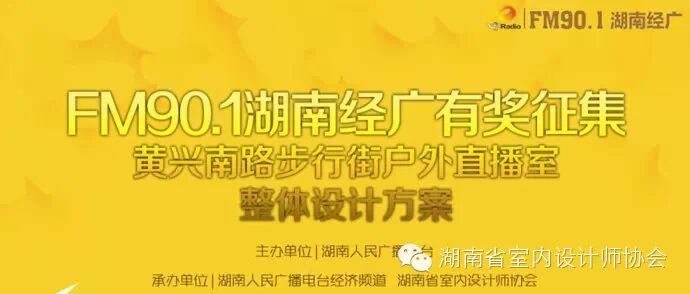 这里地处长沙地铁1号线枢纽,步行街商圈最中心 是为品牌逐鹿长沙市场/最具投资价值的首选SHOW场 2003年,FM90.1湖南经广E空间户外直播室首次亮灯 激情12载,灿烂星光,吸引千万次瞩目 100场大型活动助力品牌,搅动全城 星榜样,星公益,智领星城 大影响,大吸引,大传播,智推湖南 而今,财智901湖南电台经济频道面向全球征集—— 2015版E空间户外直播室整体设计方案 为长沙新地标创意、为长沙新名片主张 一、项目概况 【规格】 尺寸:6m(长)×5.5m(宽)×5m(高) 【区位】 湖南经广户外直播室位于长沙黄兴南路步行街中心广场大舞台右侧,红色图标1所指示的位置。 二、时间节点和作品选拔流程 【作品征集日期】 即日起-2014年12月30日 通过湖南电台经济频道、芒果广播网等媒体渠道,向全社会公开发布征集信息;湖南省室内设计师协会组织全国优秀设计师参与本次活动;本次设计方案征集活动作为命题类纳入湖南省室内设计师协会首届室内空间环境艺术设计大赛。 【专家评审】 在所有有效的投稿作品中,专家通过打分选出10幅作品获得入围奖,并进入市民投票环节。 【市民投票】 市民通过网站、微信等投票渠道,在10幅作品中选出最喜爱的作品,得票最高的3幅作品获得优秀奖,并进入定稿环节。在定稿环节,市民的投票占40%权重。 【最终定稿】 专家为3幅作品投票打分,其打分占60%权重。综合市民和专家的评分,决出最终中标设计作品获得冠军。 服务QQ: 1994059000 三、宣传和奖励 湖南经广将对入围作品和中标作品的作者进行采访和节目录制,并邀请其参与户外直播室的开播仪式。对于最终中标作品的作者,可给予现金人民币壹万元的奖励或在户外直播室显著位置标识作者姓名,以扩大其影响力。 四、知识产权说明 1、参赛者所提交的作品必须由参赛者本人创作或参与创作,参赛者应确认其作品的原创性(且为第一次发布),主办单位不承担因作品侵犯他人(或单位)的权利而产生的法律责任,其法律责任由参赛者本人承担。 2、作品一经采用,其所有权、修改权和使用权均归FM90.1湖南经广所有,设计者不得再在任何地方使用。 3、本次征集活动内容及规则最终解释权归FM90.1湖南经广所有,最终中标作品的原作者须提交FM90.1湖南经广版权声明以后方可领取奖金。 附件:户外直播室要求和参考资料 湖南省室内设计师协会 2014年11月10日