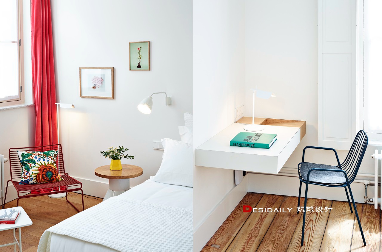 Fleur Delesalle是法国一位新生代设计师,于2011年创立自己的设计公司。在她的设计中,我们能看到清晰的平面构成,丰富的色彩表现,细腻的现代装饰表现。她同时还是一位极力追求个人风格的设计师,无论是酒店项目还是住宅项目,都留有非常强烈的个人魅力。  她总能在每个项目中寻找到建筑与历史的联系,强调创新设计,协调每个狭小的空间,痴迷空间与尺度,关注人的动态流线与细节。通过短短几年的时间,Fleur Delesalle在法国室内设计界迅速崛起,并获得了诸多奖项。