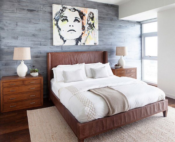 皮革也是男性卧室里面必不可少的一部分,大部分的单身汉们都对皮革有特别的偏好—毕竟它们确确实实是房间里的两点。  深色海军蓝作为床上用品或者窗帘的用色时近乎完美,它有力地强调了卧室的氛围—这是男人的地盘!光滑、简洁的装饰,清晰明了的线条都是男性卧室当中很受欢迎的元素。  当代的很多男性卧室的设计风格都从隐蔽黑暗走向了开放明亮。窗户的设计上着重于赋予房间的男主人更开阔的视野,通风的设计也日趋精良。在这样的房间里面开始新的一天,绝对能让你神清气爽!  男性卧室的设计上用色大多倾向于冷色调,大阳台、大落地窗的设计“掩饰”了色彩运用单调的问题。                                           ✪超热的灰色     近年来灰色因为百搭且经典而迅速在室内设计界兴起。当你想打造一个男性卧室的时候,灰色就是必不可少的元素。灰色常常能带来更柔和的光线和典雅的观感,与黑色搭配则体现出一种精致的时尚感。  通过运用不同色调的灰色可以让整个卧室不再单调。如果你对于灰色的油漆并非那么热衷,你可以尝试一下灰色的床单,灰色的装饰品,这些小小的单品都能为你的卧室加分喔!  灰色的卧室可能会看起来很沉闷和压抑,除非配以恰当的灯光和合理结构。木质地板,雕塑装饰都有提亮灰色,让卧室整体看起来更优雅大气的效果。