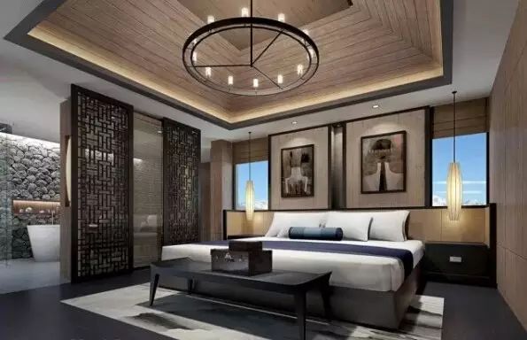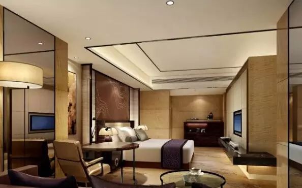 ★床头上方顶棚坚决杜绝使用射灯:第一,不安全,射灯爆炸时易伤害客人;第二,无多大实际用处,设想,你住店时会半躺在床上开着头上的射灯看书??仅仅是外观效果好点而已。一些设计师往往只重视视觉效果而忽视实际使用及影响。若换成普通筒灯,又体现不出所谓的效果了。